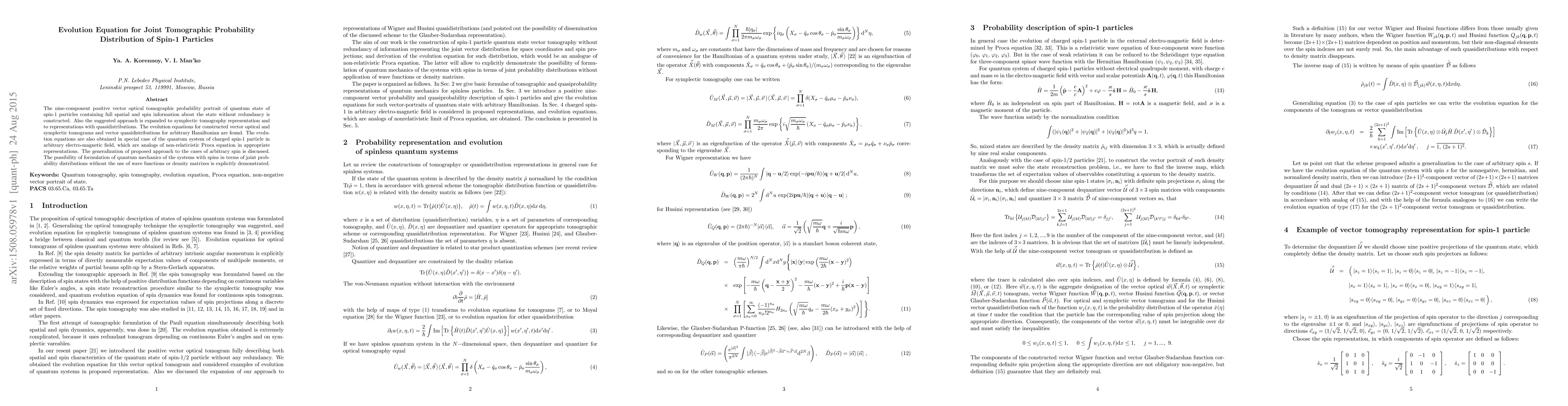 This paper constructs the joint tomographic probability distribution for spin-1 particles, providing evolution equations for these distributions under arbitrary Hamiltonians. It also extends the approach to symplectic tomography and quasidistributions, demonstrating the potential for a probability-based formulation of quantum mechanics without wave functions or density matrices.