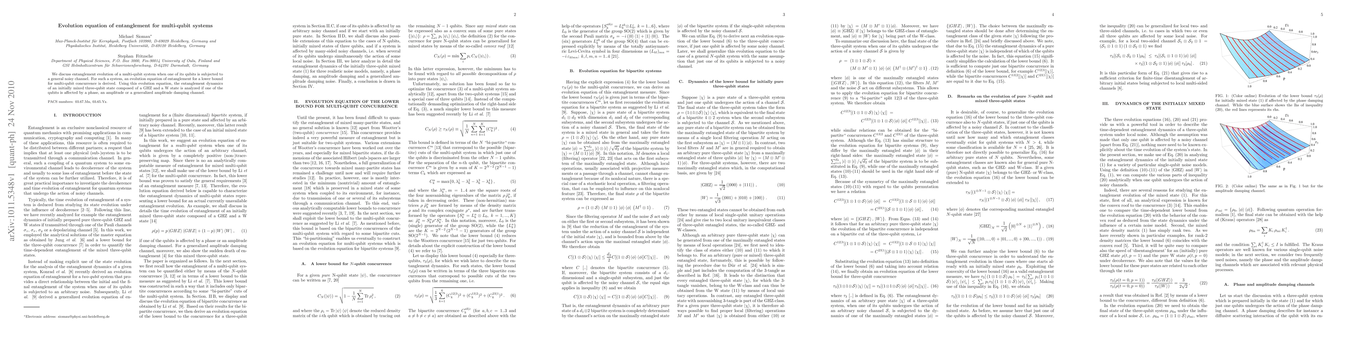 This paper derives an evolution equation for the entanglement of a multi-qubit system under noisy channels, specifically analyzing the dynamics of a mixed three-qubit state composed of GHZ and W states when one qubit is subjected to various types of damping channels. The study provides a lower bound for multi-qubit concurrence.