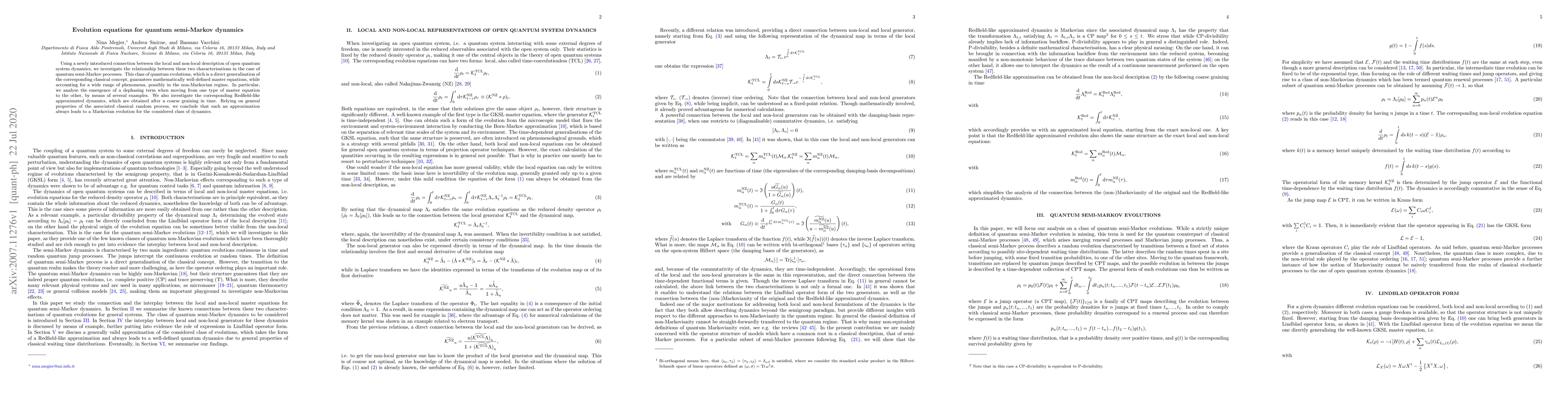 This paper explores the evolution equations for quantum semi-Markov dynamics, establishing a link between local and non-local descriptions of open quantum systems. It examines the emergence of dephasing terms and the Markovian nature of Redfield-like approximations in these quantum processes.