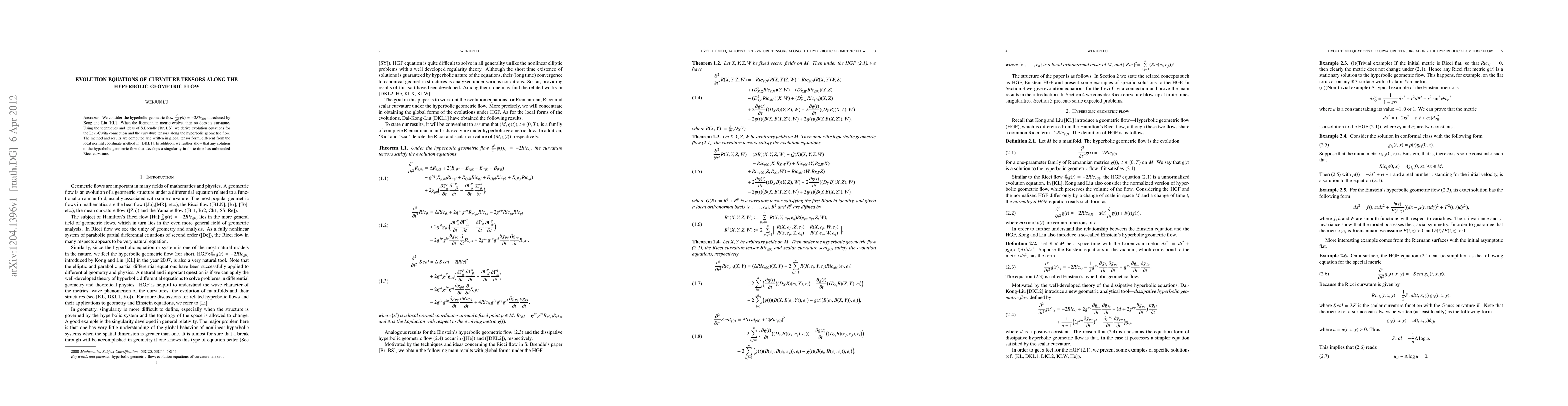 This paper derives evolution equations for the Levi-Civita connection and curvature tensors along the hyperbolic geometric flow, employing global tensor form techniques. It also proves that any solution developing a singularity in finite time has unbounded Ricci curvature.