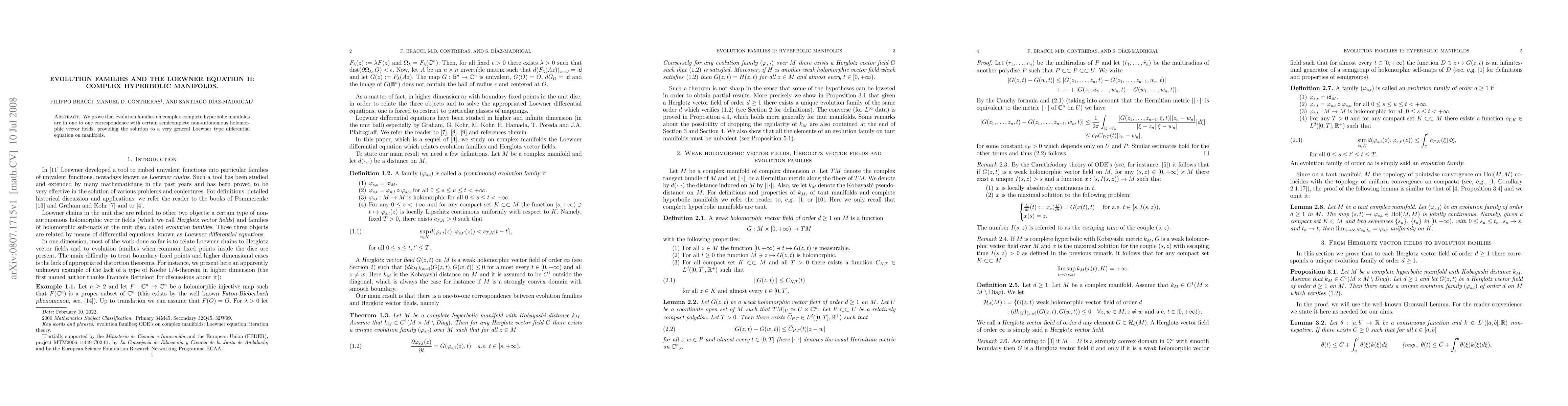 Summary: This paper establishes a one-to-one correspondence between evolution families on complex complete hyperbolic manifolds and specific semicomplete non-autonomous holomorphic vector fields, solving a generalized Loewner type differential equation on these manifolds.