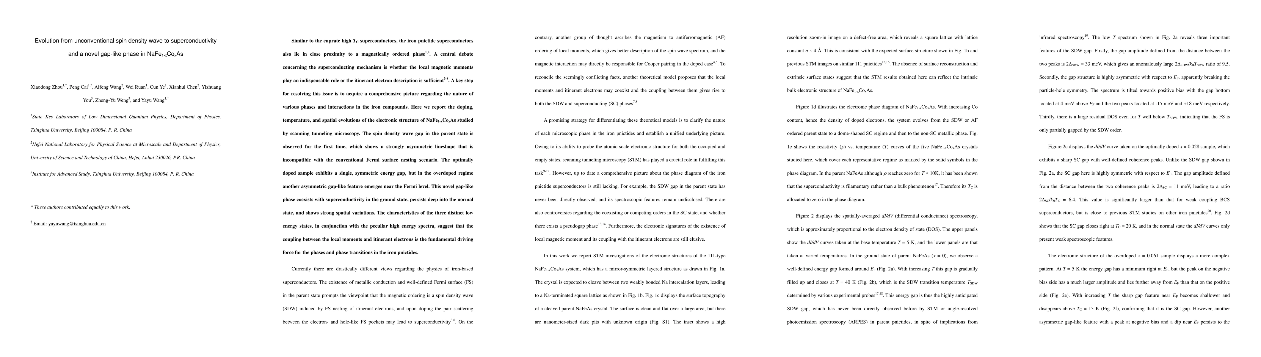 This paper investigates the electronic structure evolution in NaFe1-xCoxAs using scanning tunneling microscopy, revealing a novel gap-like phase coexisting with superconductivity and suggesting a coupling between local magnetic moments and itinerant electrons as the key driver for phase transitions in iron pnictides.