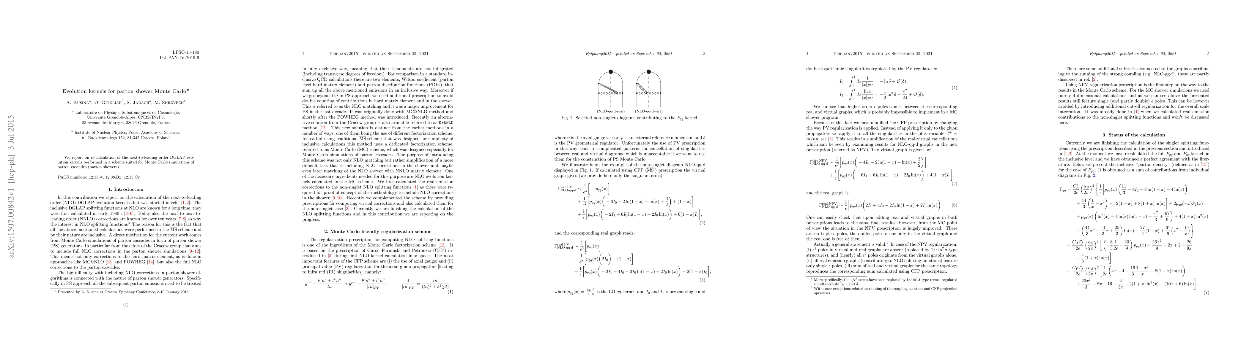 We report on re-calculation of the next-to-leading order DGLAP evolution kernels performed in a scheme suited for Monte Carlo simulations of parton cascades (parton showers).
