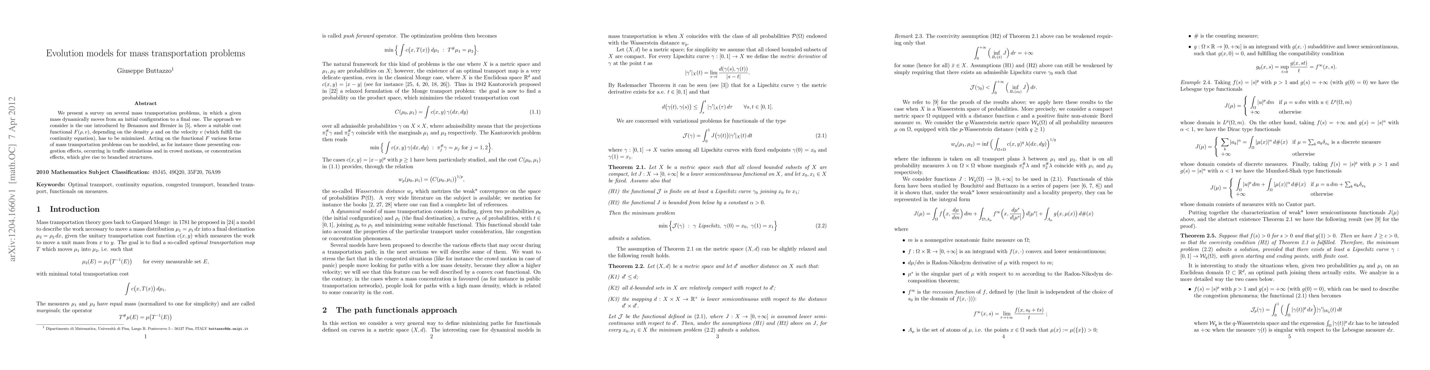 Researchers surveyed mass transportation problems using a cost functional approach, modeling congestion and concentration effects in traffic simulations and crowd motions. They presented various forms of these problems as optimization challenges to minimize the functional.