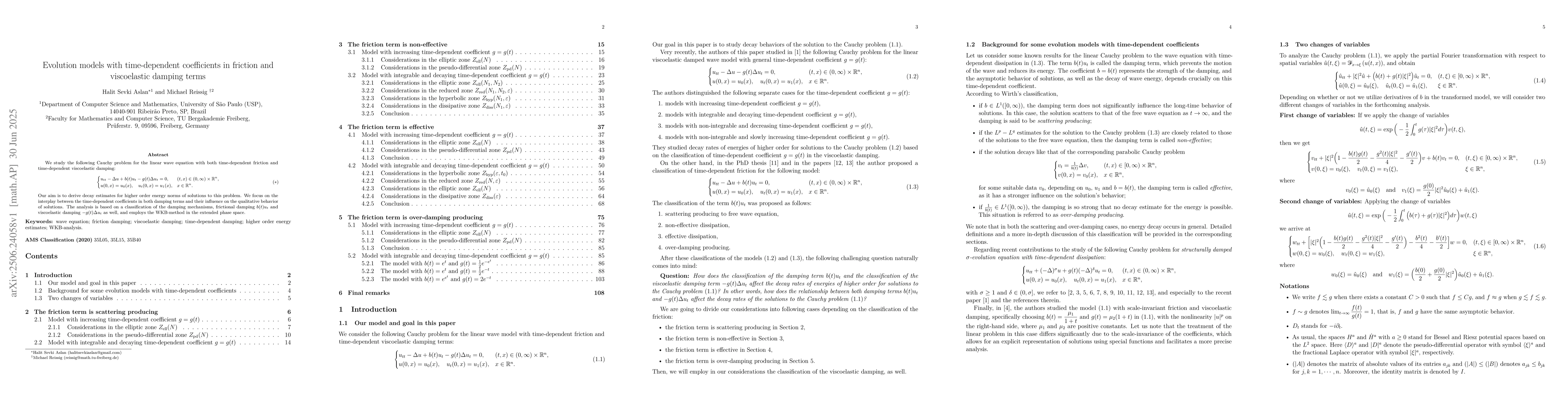 We study the following Cauchy problem for the linear wave equation with both time-dependent friction and time-dependent viscoelastic damping: \begin{equation} \label{EqAbstract}\tag{$\ast$} \begin{cases} u_{tt}- \Delta u + b(t)u_t - g(t)\Delta u_t=0, &(t,x) \in (0,\infty) \times \mathbb{R}^n, \\ u(0,x)= u_0(x),\quad u_t(0,x)= u_1(x), &x \in \mathbb{R}^n. \end{cases} \end{equation} Our goal is to derive decay estimates for higher order energy norms of solutions to this problem. We focus on the interplay between the time-dependent coefficients in both damping terms and their influence on the qualitative behavior of solutions. The analysis is based on a classification of the damping mechanisms, frictional damping $b(t)u_t$ and viscoelastic damping $-g(t)\Delta u_t$ as well, and employs the WKB-method in the extended phase space.