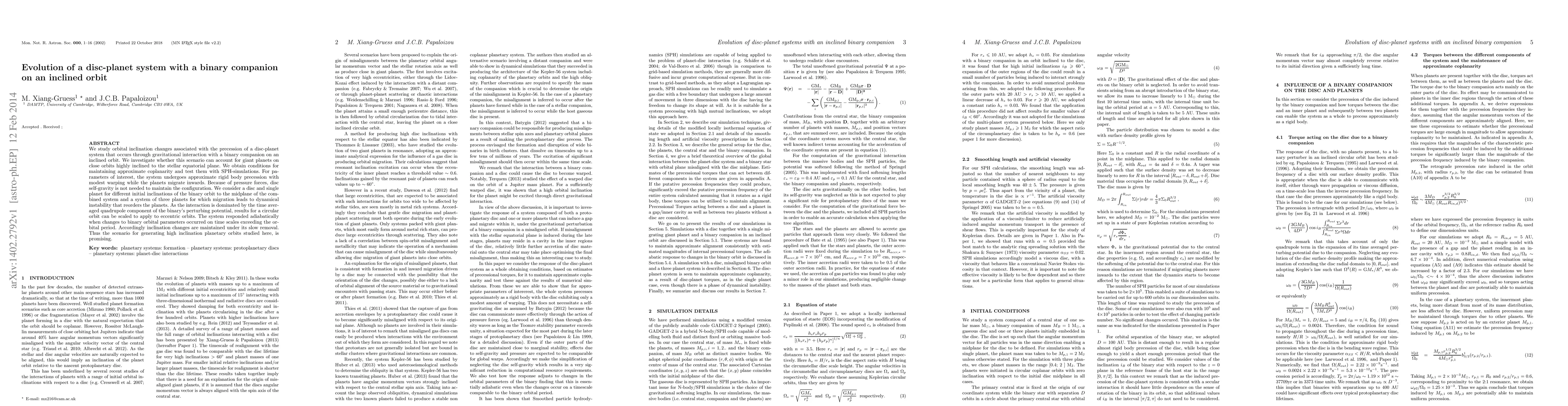 This paper investigates the orbital inclination changes in a disc-planet system influenced by a binary companion on an inclined orbit, finding that the system can maintain approximate coplanarity through precession. The study suggests this mechanism can account for giant planets on highly inclined orbits, with results scalable to eccentric binary orbits.