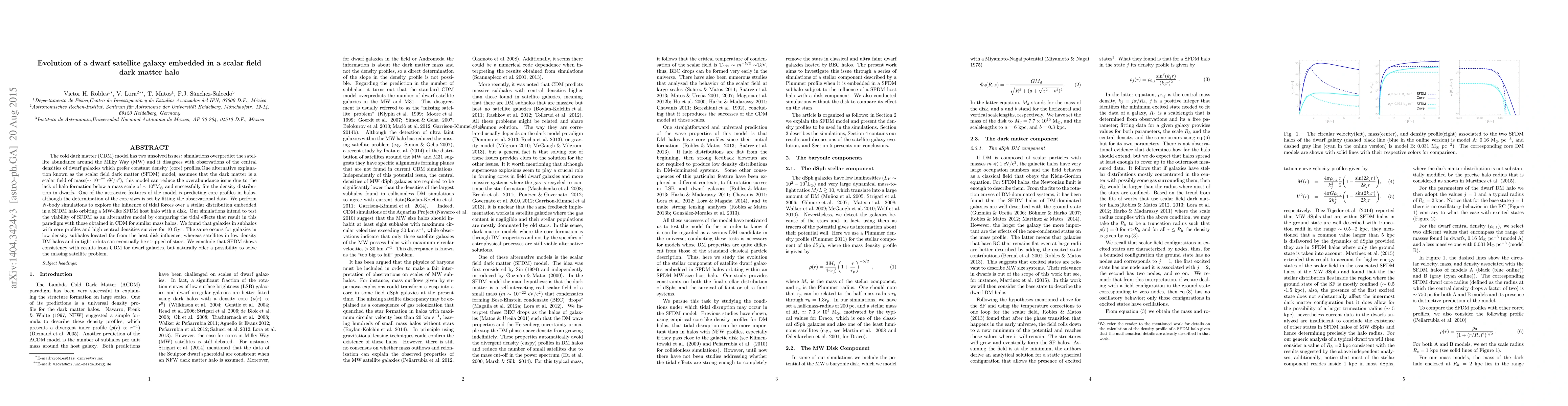 This paper investigates the evolution of a dwarf satellite galaxy within a scalar field dark matter (SFDM) halo, comparing it to predictions from the cold dark matter (CDM) model. SFDM, which posits dark matter as a scalar field, can address the overprediction of satellite galaxies and the discrepancy in dwarf galaxy density profiles. Simulations show that SFDM halos can maintain core profiles and high central densities over 10 Gyr, suggesting it may resolve the "missing satellite problem" compared to CDM.
