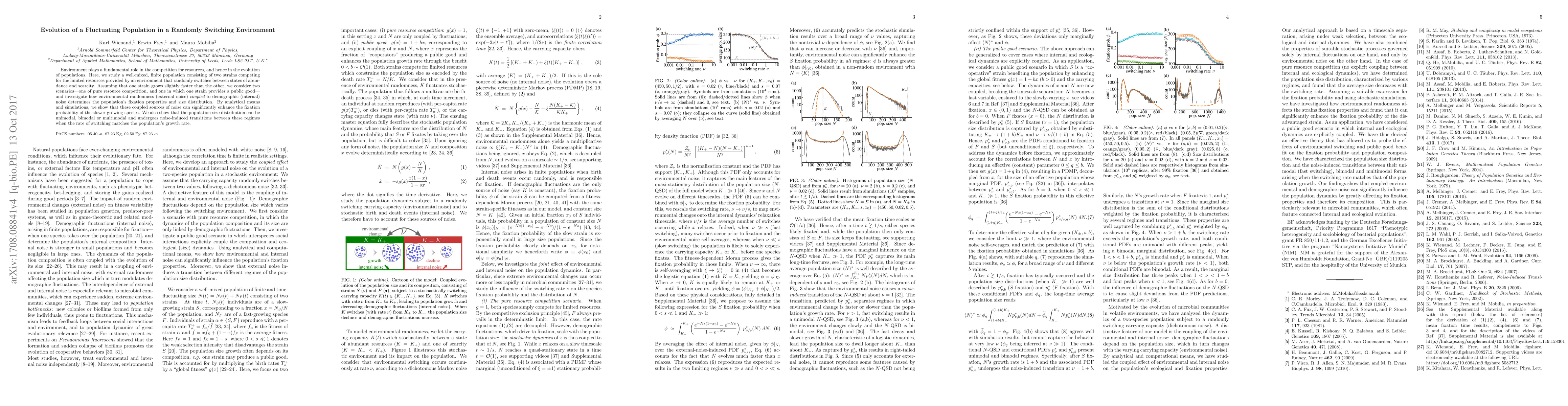 A study on population evolution in a randomly switching environment found that external noise can significantly enhance the fixation probability of slower-growing species. This leads to varying population size distributions, including unimodal, bimodal, or multimodal regimes.