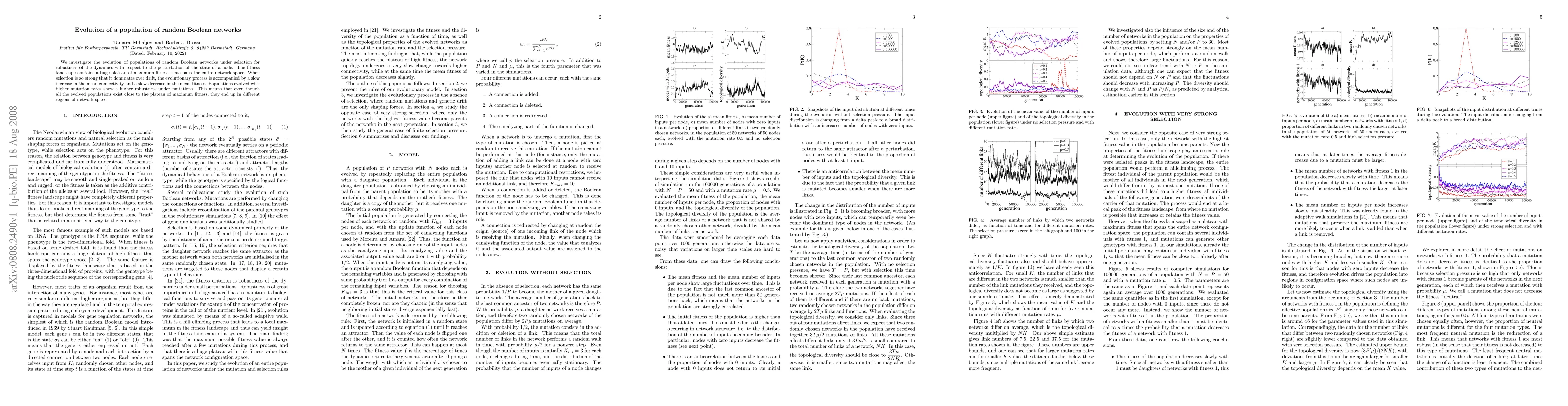 A study on random Boolean networks found that strong selection for robustness leads to increased connectivity but decreased fitness, while populations with higher mutation rates become more robust under mutations. This implies different evolved populations converge near the maximum fitness plateau in distinct regions of network space.