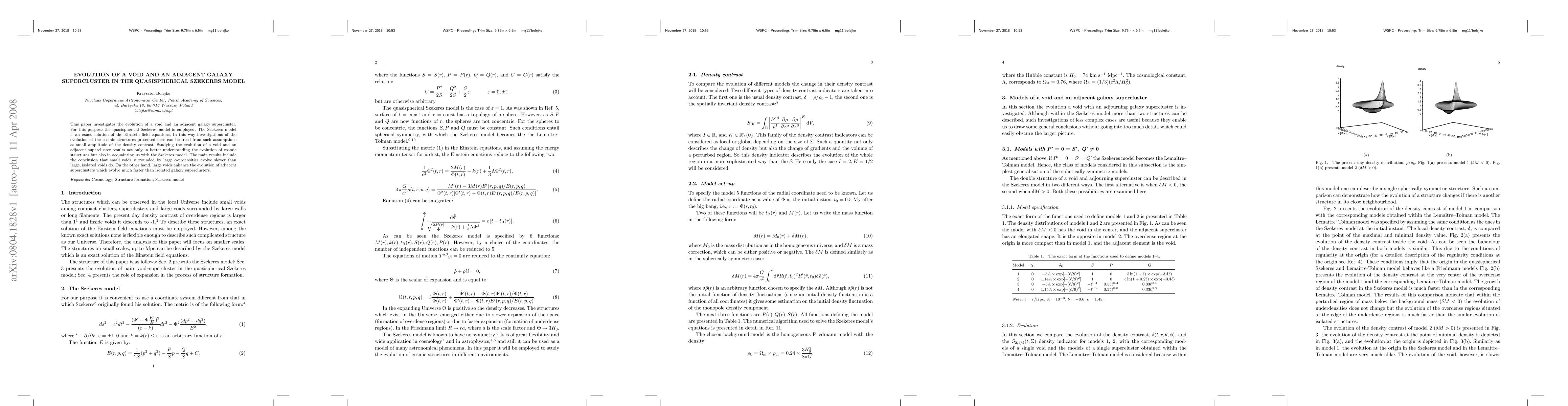 This paper investigates the evolution of a void and an adjacent galaxy supercluster. For this purpose the quasispherical Szekeres model is employed. The Szekeres model is an exact solution of the Einstein field equations. In this way investigations of the evolution of the cosmic structures presented here can be freed from such assumptions as small amplitude of the density contrast. Studying the evolution of a void and an adjacent supercluster results not only in better understanding the evolution of cosmic structures but also in acquainting us with the Szekeres model. The main results include the conclusion that small voids surrounded by large overdensities evolve slower than large, isolated voids do. On the other hand, large voids enhance the evolution of adjacent superclusters which evolve much faster than isolated galaxy superclusters.