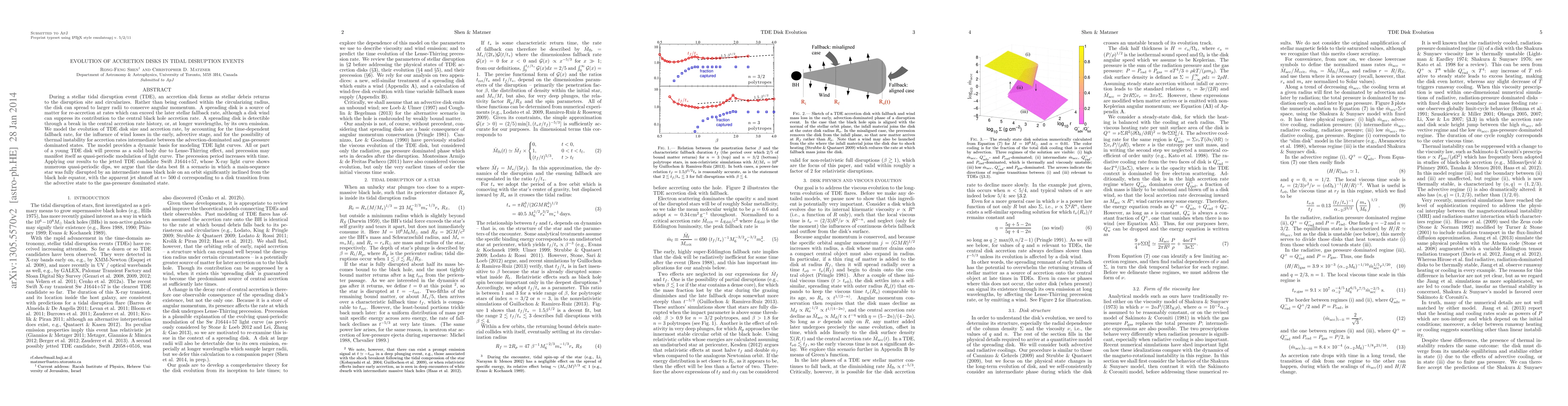 This paper models the evolution of accretion disks in tidal disruption events (TDEs), focusing on disk spreading, re-accretion rates, and the impact of disk winds. It finds that disk precession due to the Lense-Thirring effect can cause quasi-periodic light curve modulation, as evidenced in the jetted TDE candidate Swift J1644+57.