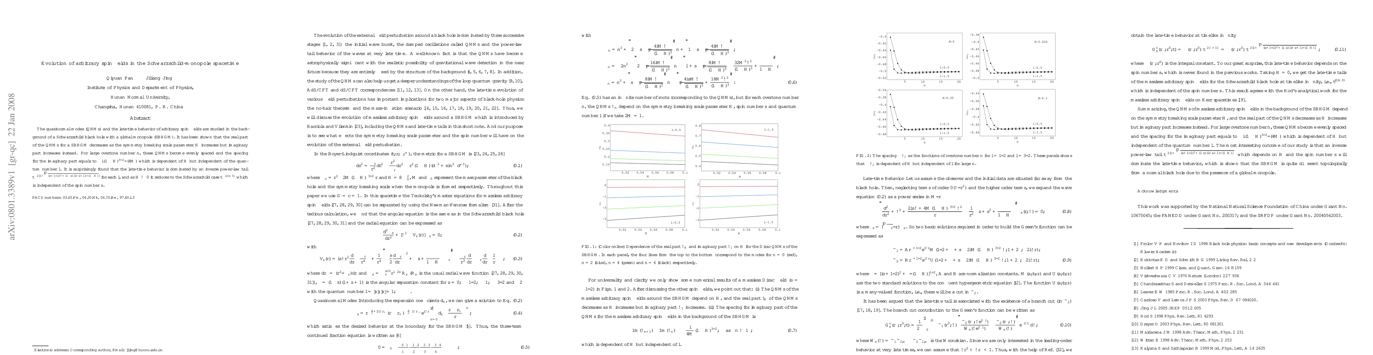 The quasinormal modes (QNMs) and the late-time behavior of arbitrary spin fields are studied in the background of a Schwarzschild black hole with a global monopole (SBHGM). It has been shown that the real part of the QNMs for a SBHGM decreases as the symmetry breaking scale parameter $H$ increases but imaginary part increases instead. For large overtone number $n$, these QNMs become evenly spaced and the spacing for the imaginary part equals to $-i(1-H)^{3/2}/(4M)$ which is dependent of $H$ but independent of the quantum number $l$. It is surprisingly found that the late-time behavior is dominated by an inverse power-law tail $t^{-2[1+\sqrt{(s+1/2)^{2}+ (l-s)(l+s+1)/(1-H)}]}$ for each $l$, and as $H\to0$ it reduces to the Schwarzschild case $t^{-(2l+3)}$ which is independent of the spin number $s$.