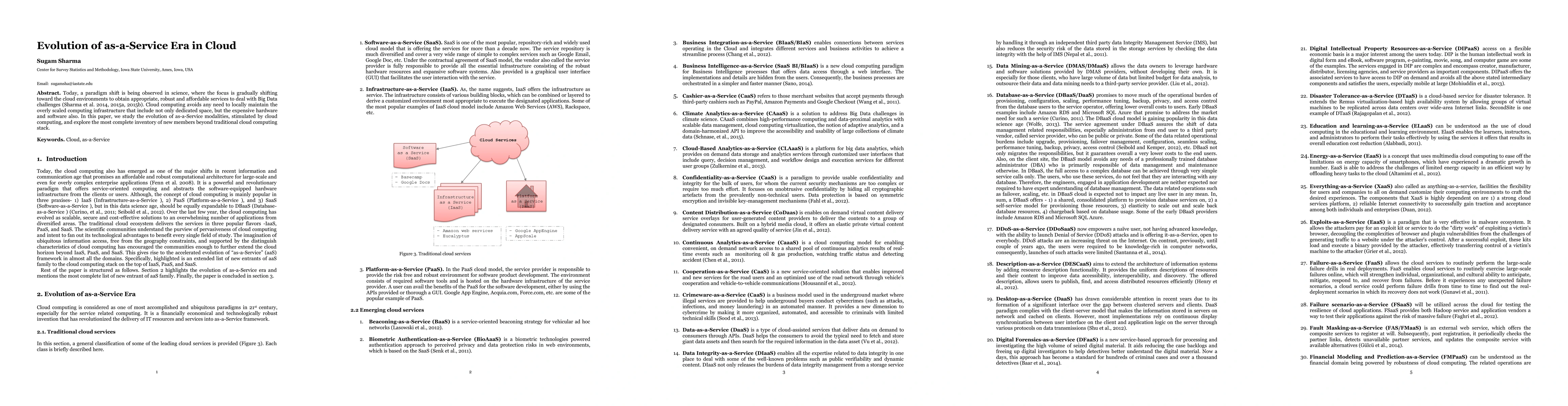 This paper investigates the evolution of as-a-Service models in cloud computing, emphasizing the shift towards more robust and affordable services to address Big Data challenges, and provides a comprehensive inventory of emerging service modalities beyond the traditional cloud stack.