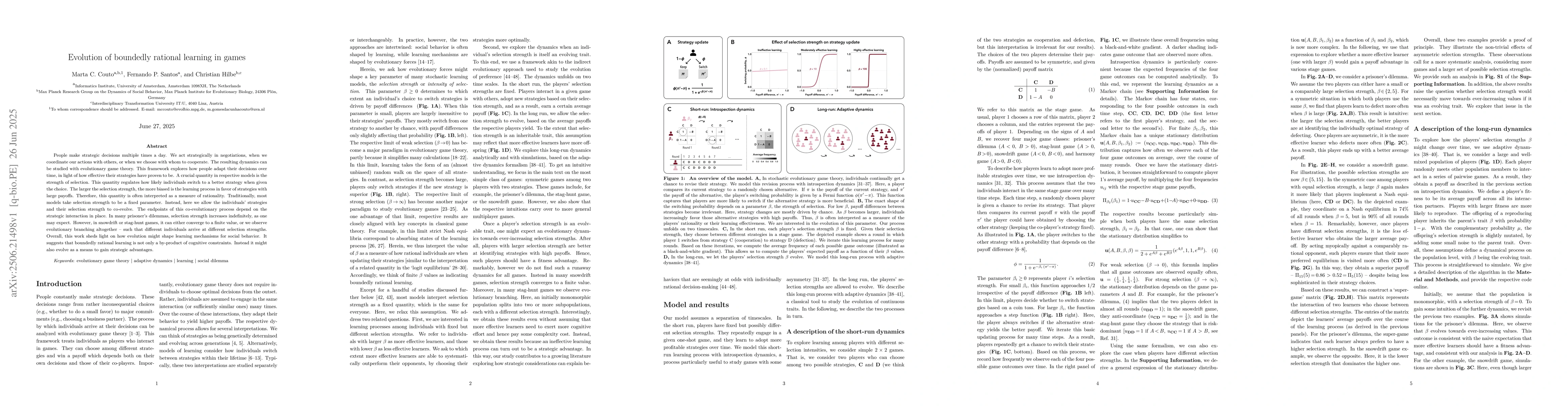 This research advances understanding of how bounded rationality and learning mechanisms co-evolve, shedding light on social behavior development and strategic adaptation over evolutionary timescales.