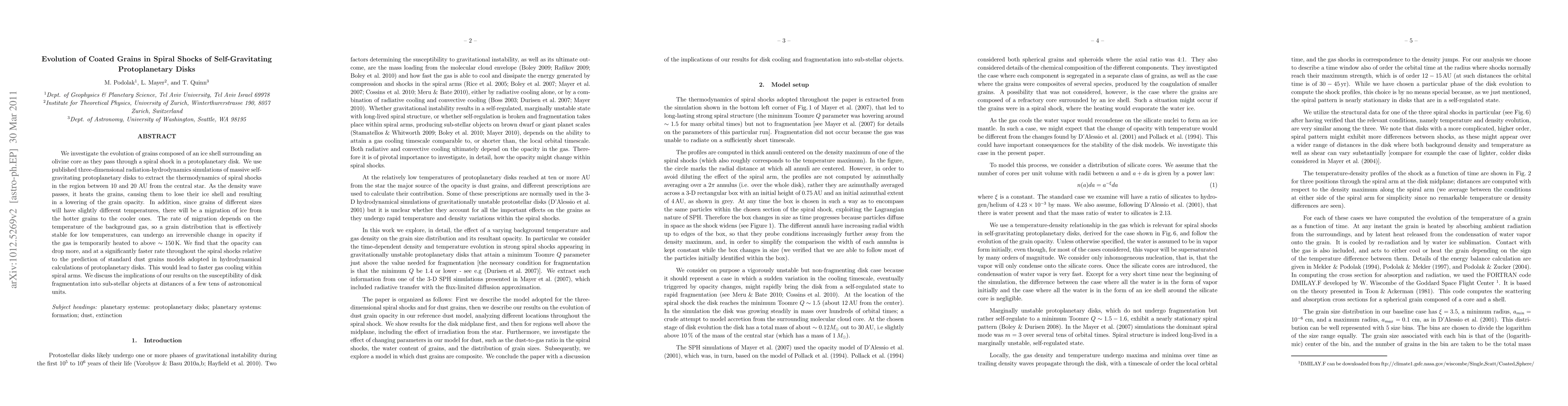 This paper examines how coated grains in protoplanetary disks evolve through spiral shocks, finding that heating causes ice shells to melt, reducing grain opacity and altering grain distribution. The study suggests that this process can lead to faster gas cooling in spiral arms, potentially impacting disk fragmentation into sub-stellar objects.