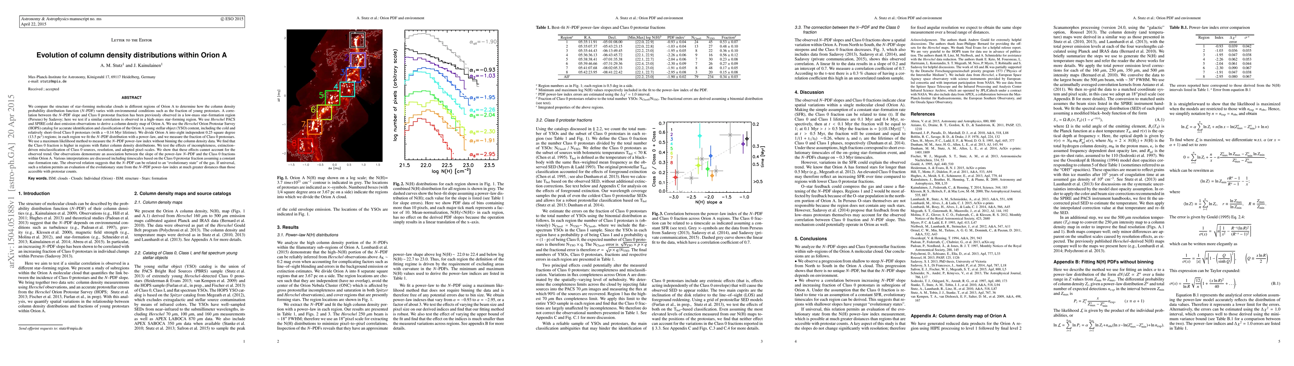 We compare the structure of star-forming molecular clouds in different regions of Orion A to determine how the column density probability distribution function (N-PDF) varies with environmental conditions such as the fraction of young protostars. A correlation between the N-PDF slope and Class 0 protostar fraction has been previously observed in a low-mass star-formation region (Perseus) by Sadavoy; here we test if a similar correlation is observed in a high-mass star-forming region. We use Herschel data to derive a column density map of Orion A. We use the Herschel Orion Protostar Survey catalog for accurate identification and classification of the Orion A young stellar object (YSO) content, including the short-lived Class 0 protostars (with a $\sim$ 0.14 Myr lifetime). We divide Orion A into eight independent 13.5 pc$^2$ regions; in each region we fit the N-PDF distribution with a power-law, and we measure the fraction of Class 0 protostars. We use a maximum likelihood method to measure the N-PDF power-law index without binning. We find that the Class 0 fraction is higher in regions with flatter column density distributions. We test the effects of incompleteness, YSO misclassification, resolution, and pixel-scale. We show that these effects cannot account for the observed trend. Our observations demonstrate an association between the slope of the power-law N-PDF and the Class 0 fractions within Orion A. Various interpretations are discussed including timescales based on the Class 0 protostar fraction assuming a constant star-formation rate. The observed relation suggests that the N-PDF can be related to an "evolutionary state" of the gas. If universal, such a relation permits an evaluation of the evolutionary state from the N-PDF power-law index at much greater distances than those accesible with protostar counts. (abridged)