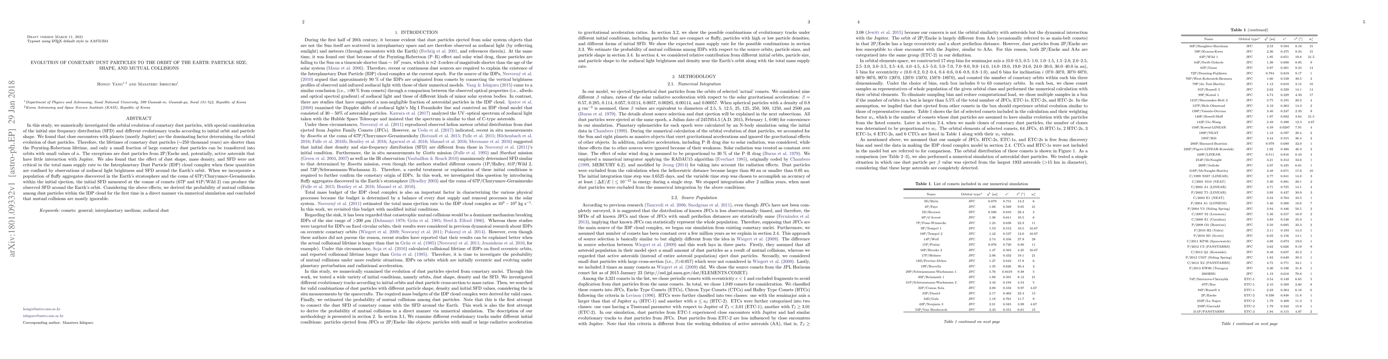In this study, we numerically investigated the orbital evolution of cometary dust particles, with special consideration of the initial size frequency distribution (SFD) and different evolutionary tracks according to initial orbit and particle shape. We found that close encounters with planets (mostly Jupiter) are the dominating factor determining the orbital evolution of dust particles. Therefore, the lifetimes of cometary dust particles (~250 thousand years) are shorter than the Poynting-Robertson lifetime, and only a small fraction of large cometary dust particles can be transferred into orbits with small values of a. The exceptions are dust particles from 2P/Encke and, potentially, active asteroids that have little interaction with Jupiter. We also found that the effect of dust shape, mass density, and SFD were not critical in the total mass supply rate to the Interplanetary Dust Particle (IDP) cloud complex when these quantities are confined by observations of zodiacal light brightness and SFD around the Earth's orbit. When we incorporate a population of fluffy aggregates discovered in the Earth's stratosphere and the coma of 67P/Churyumov-Gerasimenko within the initial ejection, the initial SFD measured at the comae of comets (67P and 81P/Wild 2) can produce the observed SFD around the Earth's orbit. Considering the above effects, we derived the probability of mutual collisions among dust particles within the IDP cloud for the first time in a direct manner via numerical simulation and concluded that mutual collisions are mostly ignorable.