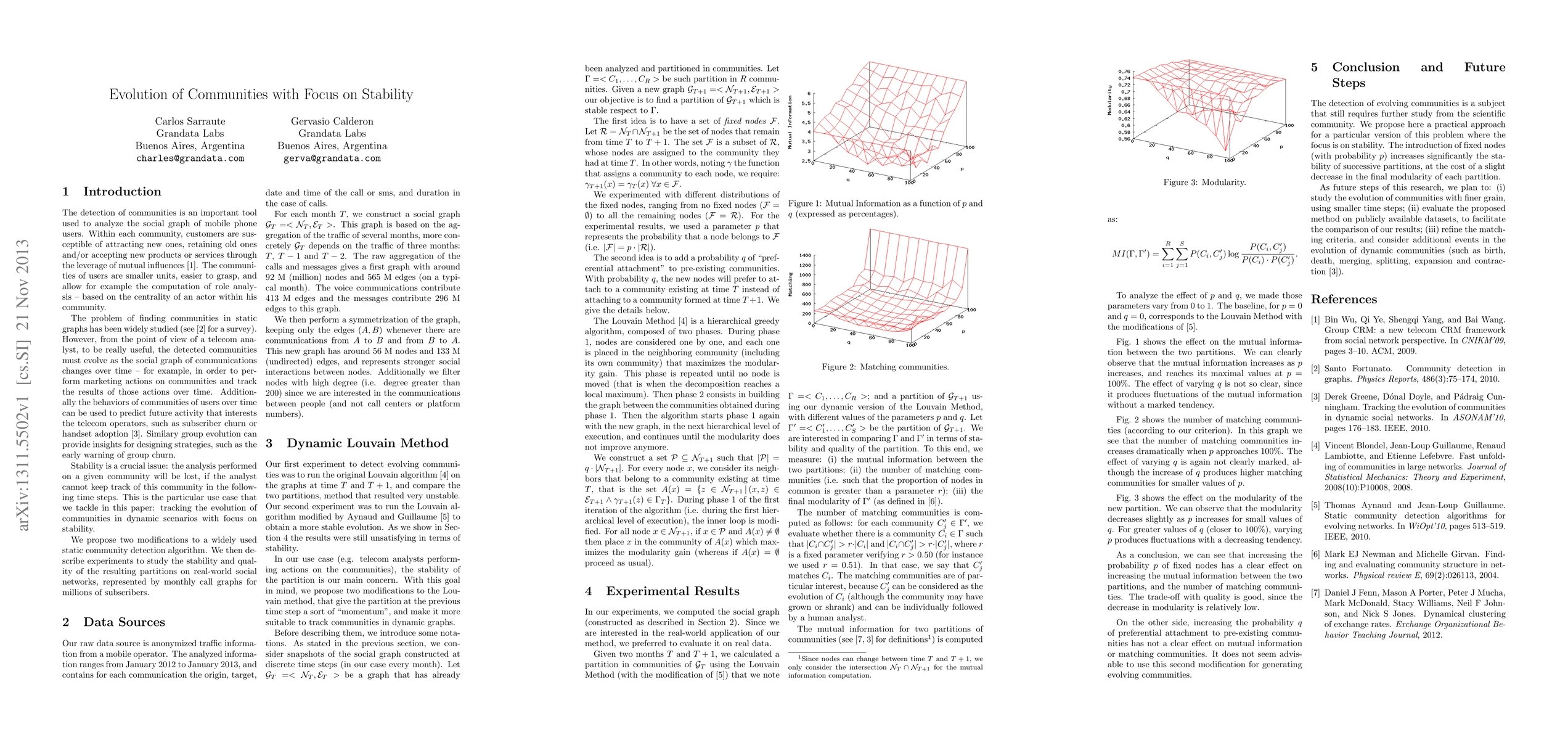 The detection of communities is an important tool used to analyze the social graph of mobile phone users. Within each community, customers are susceptible of attracting new ones, retaining old ones and/or accepting new products or services through the leverage of mutual influences. The communities of users are smaller units, easier to grasp, and allow for example the computation of role analysis -- based on the centrality of an actor within his community. The problem of finding communities in static graphs has been widely studied. However, from the point of view of a telecom analyst, to be really useful, the detected communities must evolve as the social graph of communications changes over time -- for example, in order to perform marketing actions on communities and track the results of those actions over time. Additionally the behaviors of communities of users over time can be used to predict future activity that interests the telecom operators, such as subscriber churn or handset adoption. Similary group evolution can provide insights for designing strategies, such as the early warning of group churn. Stability is a crucial issue: the analysis performed on a given community will be lost, if the analyst cannot keep track of this community in the following time steps. This is the particular use case that we tackle in this paper: tracking the evolution of communities in dynamic scenarios with focus on stability. We propose two modifications to a widely used static community detection algorithm. We then describe experiments to study the stability and quality of the resulting partitions on real-world social networks, represented by monthly call graphs for millions of subscribers.