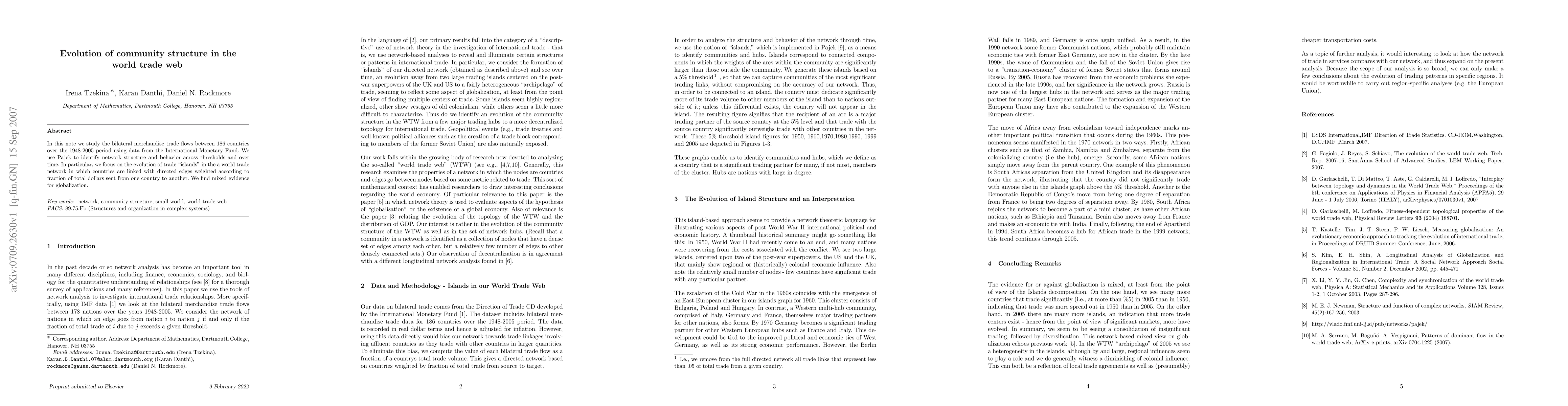 This paper examines the bilateral trade network between 186 countries from 1948 to 2005, identifying evolving trade "islands" and mixed evidence of globalization through network analysis using Pajek. The study highlights changes in trade connections over time.