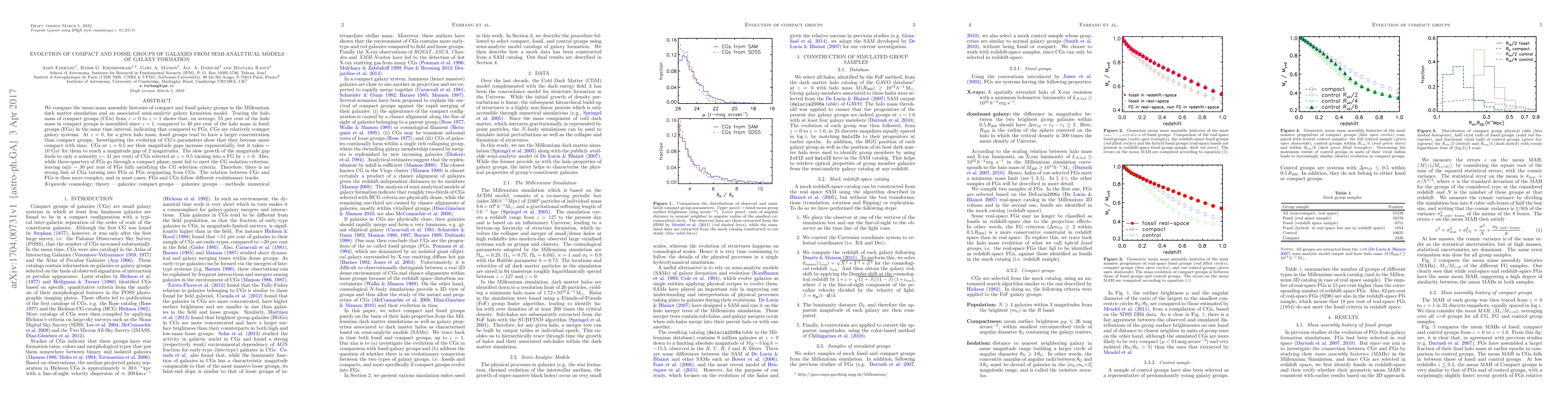 This study compares the mass assembly histories of compact and fossil galaxy groups using a semi-analytical model. It finds that compact groups are relatively younger, assembling more mass recently compared to fossil groups, and that there is no strong evolutionary link between the two types of groups.