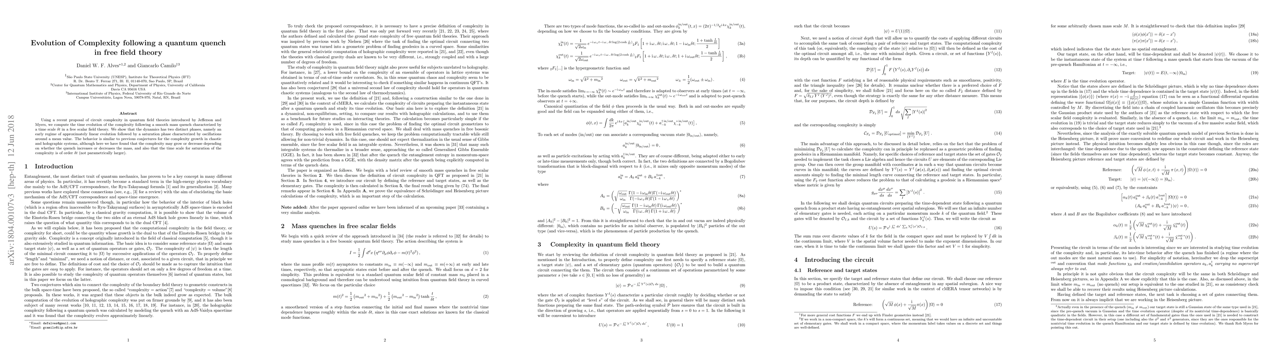 Using a recent proposal of circuit complexity in quantum field theories introduced by Jefferson and Myers, we compute the time evolution of the complexity following a smooth mass quench characterized by a time scale $\delta t$ in a free scalar field theory. We show that the dynamics has two distinct phases, namely an early regime of approximately linear evolution followed by a saturation phase characterized by oscillations around a mean value. The behavior is similar to previous conjectures for the complexity growth in chaotic and holographic systems, although here we have found that the complexity may grow or decrease depending on whether the quench increases or decreases the mass, and also that the time scale for saturation of the complexity is of order $\delta t$ (not parametrically larger).