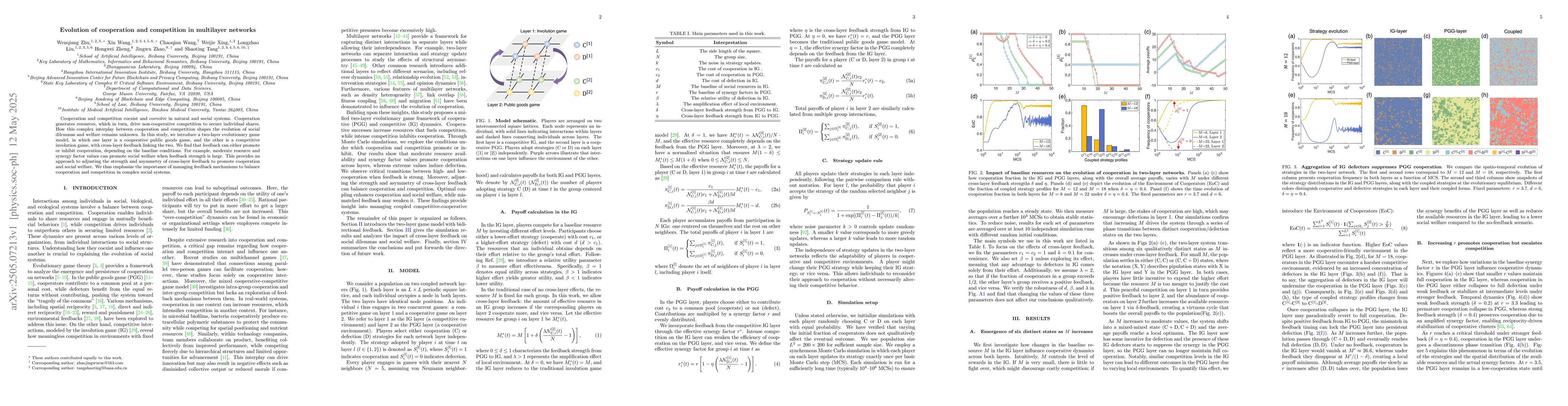 The study employs a two-layer evolutionary game model, comprising a cooperative public goods game and a competitive involution game, with cross-layer feedback linking the two layers.