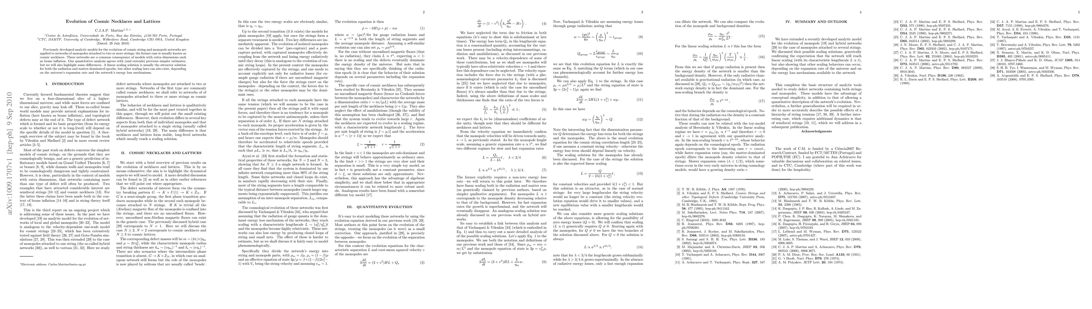 This paper studies the evolution of cosmic necklaces and lattices formed by monopoles attached to cosmic strings, commonly arising in brane inflation models. The analysis extends previous models and finds that linear scaling solutions dominate during both radiation and matter-dominated epochs, though alternative scaling laws may occur based on the universe's expansion rate and energy loss mechanisms.
