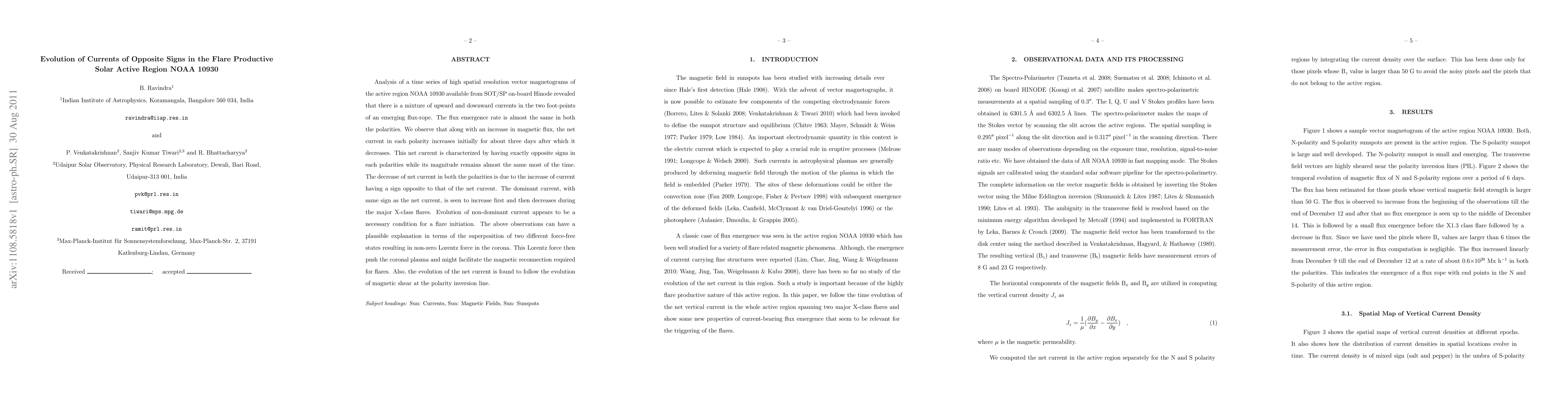 This study analyzes high-resolution vector magnetograms of the solar active region NOAA 10930, revealing the emergence of currents of opposite signs in the flux-rope foot-points. The net current initially increases with flux emergence but decreases later, driven by the growth of opposing currents, which may facilitate flare initiation.
