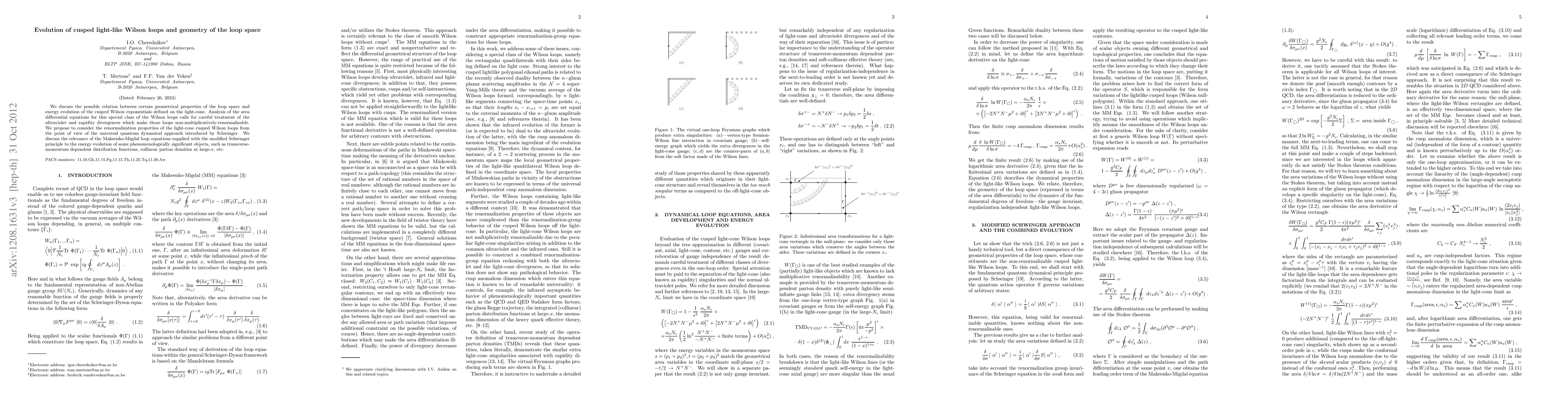 This paper explores the connection between the geometrical properties of loop space and the energy evolution of cusped light-like Wilson loops on the light-cone. It addresses ultraviolet and rapidity divergences, proposing a renormalization approach based on Schwinger's quantum dynamical method, and discusses the potential relevance of the Makeenko-Migdal loop equations to significant phenomenological objects.