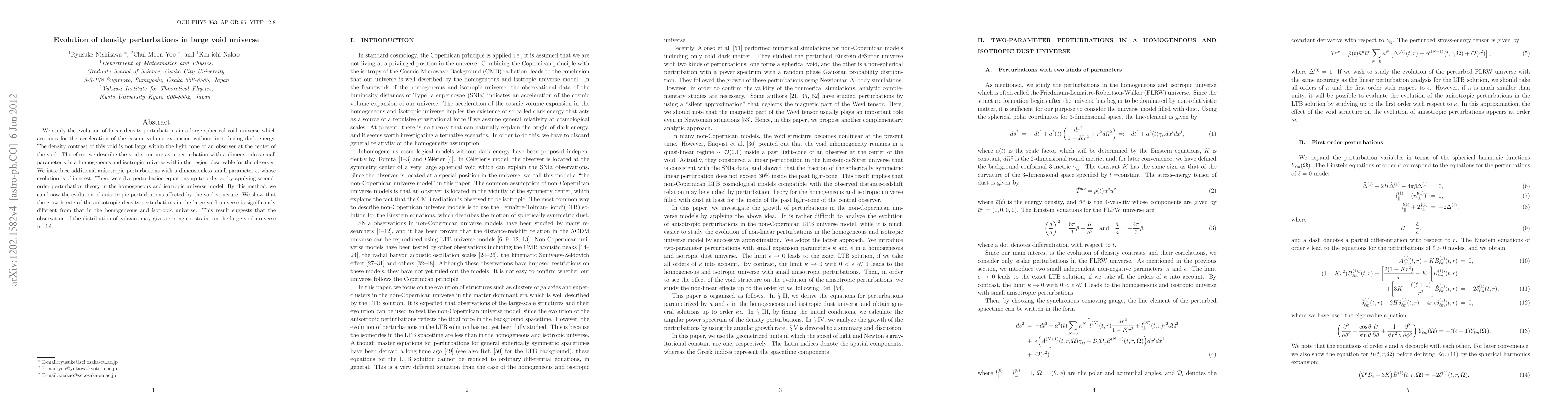 This paper investigates the evolution of linear density perturbations in a large spherical void universe, proposing an alternative to dark energy for cosmic expansion. It employs second-order perturbation theory to analyze anisotropic perturbations within the void, revealing a significantly different growth rate of density perturbations compared to a homogeneous and isotropic universe.