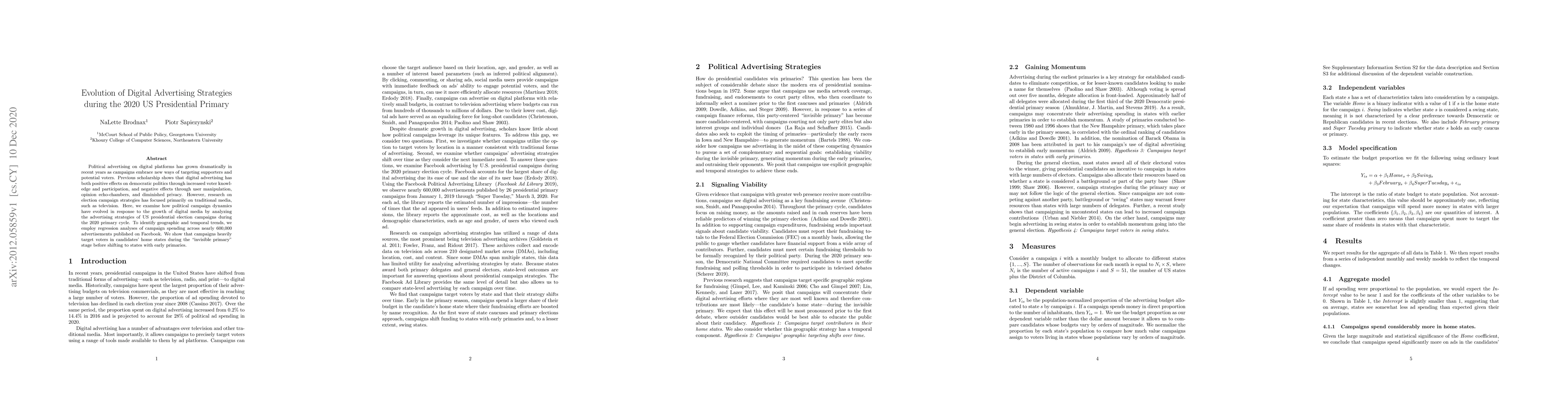 This research highlights the growing importance of online advertising in political campaigns and its potential impact on voter behavior.
