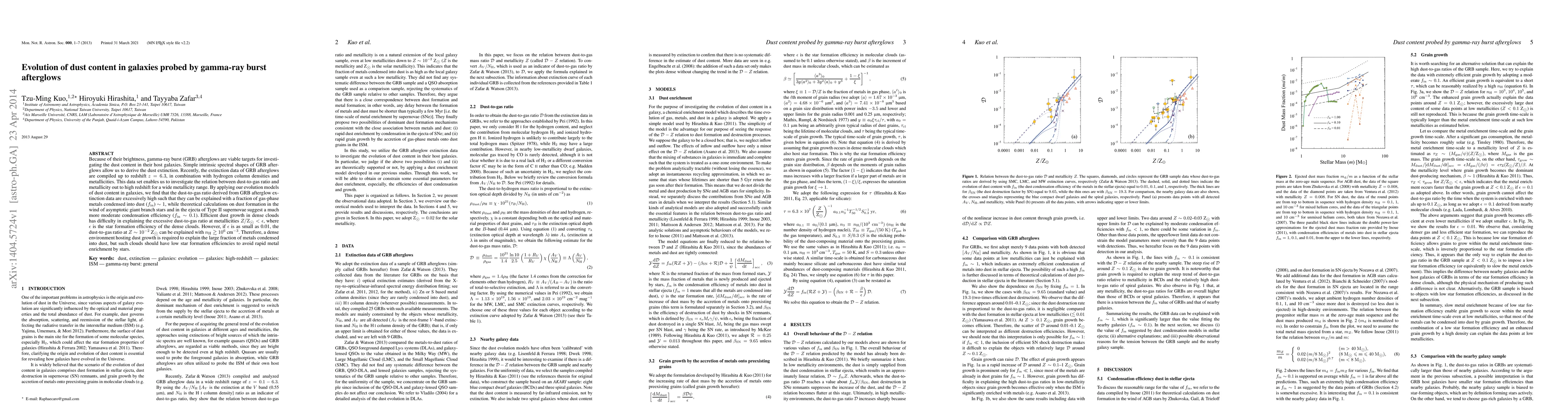 This paper investigates the dust content in galaxies using gamma-ray burst (GRB) afterglows, finding excessively high dust-to-gas ratios that challenge current theoretical models. It suggests a dense environment with low star formation efficiency is needed to explain the observed high dust-to-gas ratio.