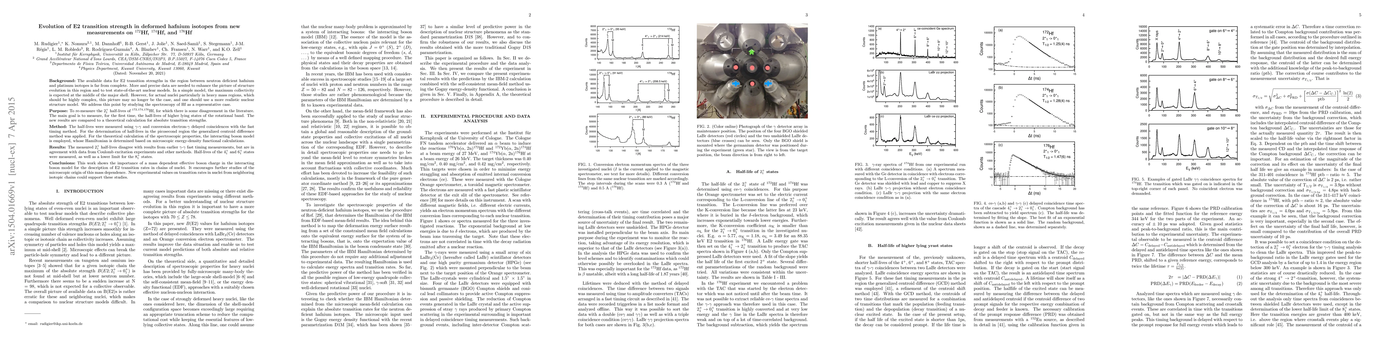 Researchers measured half-lives of deformed hafnium isotopes to improve understanding of E2 transition strengths in neutron-deficient nuclei, finding discrepancies with previous measurements that suggest a mass-dependence of effective boson charge.