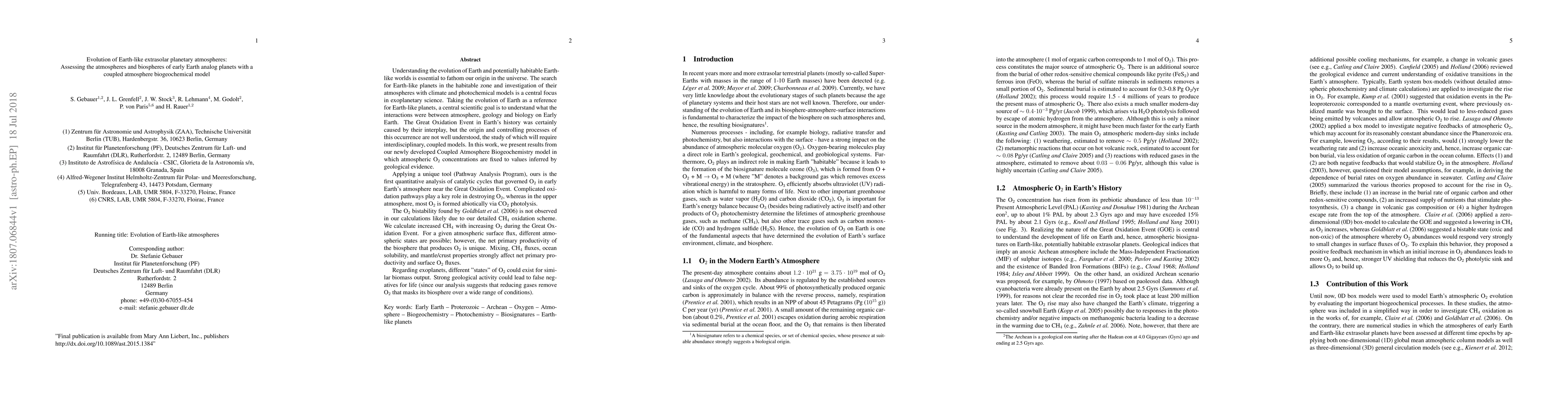 Understanding the evolution of Earth and potentially habitable Earth-like worlds is essential to fathom our origin in the Universe. The search for Earth-like planets in the habitable zone and investigation of their atmospheres with climate and photochemical models is a central focus in exoplanetary science. Taking the evolution of Earth as a reference for Earth-like planets, a central scientific goal is to understand what the interactions were between atmosphere, geology, and biology on early Earth. The Great Oxidation Event (GOE) in Earth's history was certainly caused by their interplay, but the origin and controlling processes of this occurrence are not well understood, the study of which will require interdisciplinary, coupled models. In this work, we present results from our newly developed Coupled Atmosphere Biogeochemistry model in which atmospheric O$_2$ concentrations are fixed to values inferred by geological evidence. Applying a unique tool, ours is the first quantitative analysis of catalytic cycles that governed O$_2$ in early Earth's atmosphere near the GOE. Complicated oxidation pathways play a key role in destroying O$_2$, whereas in the upper atmosphere, most O$_2$ is formed abiotically via CO$_2$ photolysis. The O$_2$ bistability found by Goldblatt et al. (2006) is not observed in our calculations likely due to our detailed CH$_4$ oxidation scheme. We calculate increased CH$_4$ with increasing O$_2$ during the GOE. For a given atmospheric surface flux, different atmospheric states are possible; however, the net primary productivity (NPP) of the biosphere that produces O$_2$ is unique. Mixing, CH$_4$ fluxes, ocean solubility, and mantle/crust properties strongly affect NPP and surface O$_2$ fluxes. Regarding exoplanets, different "states" of O$_2$ could exist for similar biomass output. Strong geological activity could lead to false negatives for life.