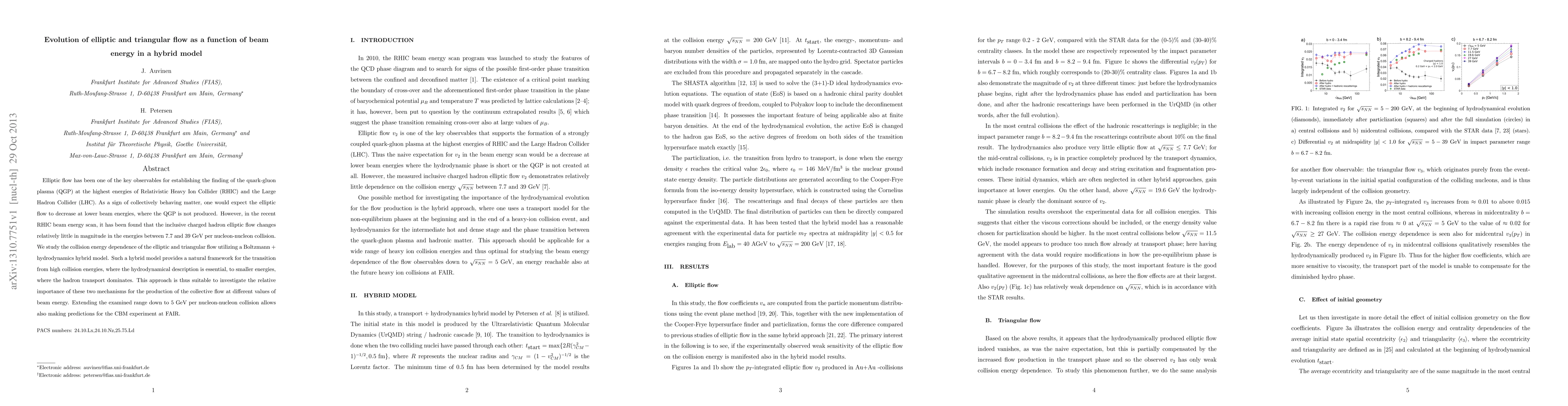 This study investigates how elliptic and triangular flow change at different beam energies using a hybrid model that combines Boltzmann and hydrodynamics, revealing minimal changes in flow magnitude between 7.7 GeV and 39 GeV.