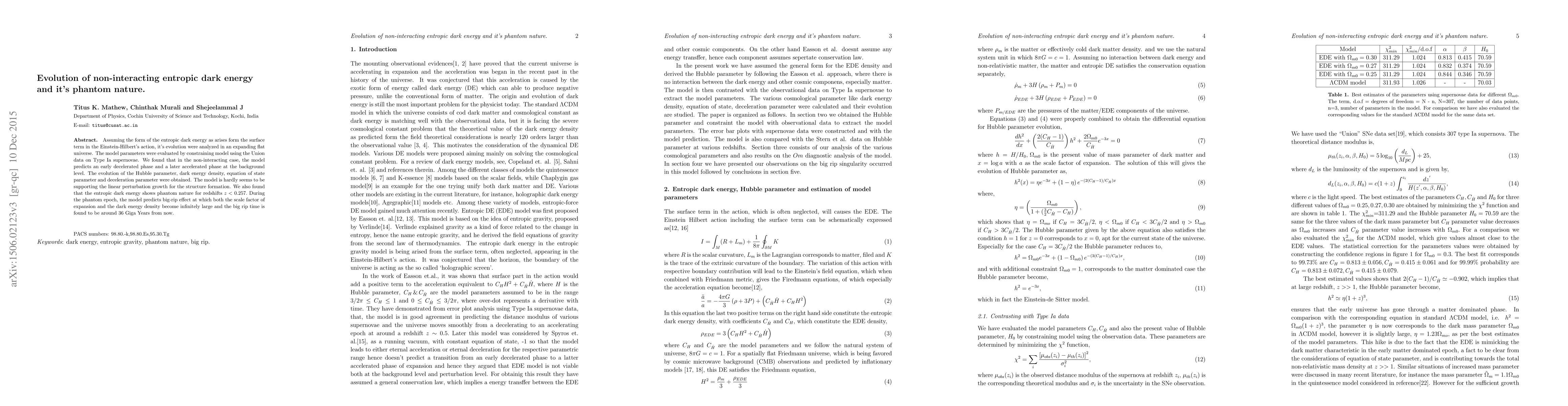 Assuming the form of the entropic dark energy as arises form the surface term in the Einstein-Hilbert's action, it's evolution were analyzed in an expanding flat universe. The model parameters were evaluated by constraining model using the Union data on Type Ia supernovae. We found that the model predicts an early decelerated phase and a later accelerated phase at the background level. The evolution of the Hubble parameter, dark energy density, equation of state parameter and deceleration parameter were obtained. The model is diagnosed with $Om$ parameter. The model is hardly seems to be supporting the linear perturbation growth for the structure formation. We also found that the entropic dark energy shows phantom nature for redshifts $z<0.257.$ During the phantom epoch, the model predicts big-rip effect at which both the scale factor of expansion and the dark energy density become infinitely large and the big rip time is found to be around 36 Giga Years from now.