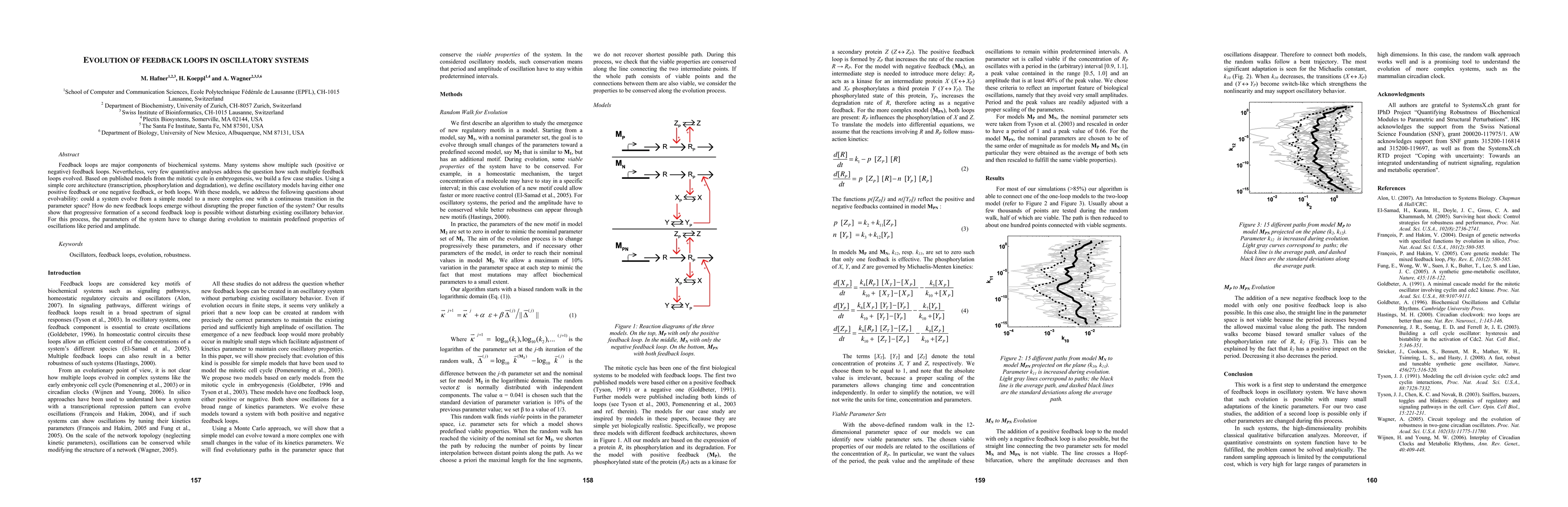 This paper investigates the evolution of feedback loops in oscillatory biochemical systems, specifically focusing on the mitotic cycle. It demonstrates that a simple core architecture can evolve into a more complex model with both positive and negative feedback loops without disrupting the system's oscillatory behavior, provided that system parameters adjust appropriately to maintain oscillation properties.