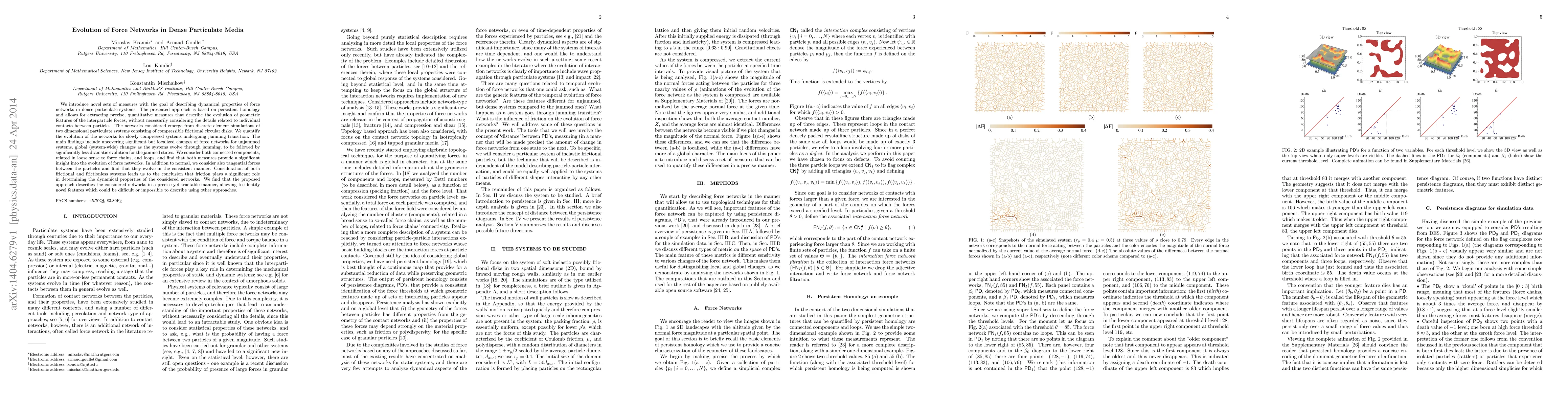 This research paper introduces a new approach to study force networks in dense particulate systems using persistent homology, revealing significant changes in network dynamics during jamming transitions.
