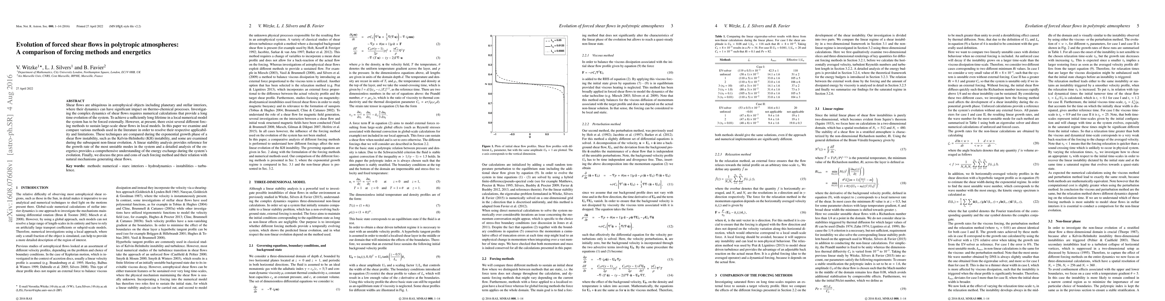 This paper compares various methods used to externally force shear flows in polytropic atmospheres, analyzing their effectiveness during the exponential growth and non-linear evolution phases. A linear stability analysis and energetics are employed to evaluate the growth rates and energy exchanges, ultimately discussing the strengths and limitations of each forcing method.