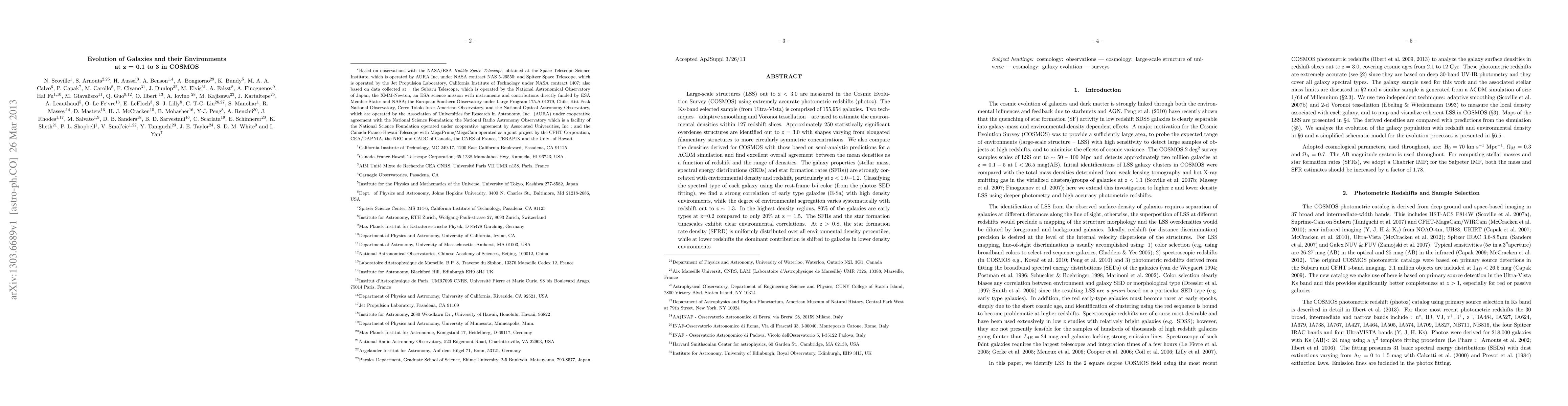 This study in the COSMOS survey measures large-scale structures and environmental densities of 155,954 galaxies from z = 0.1 to 3.0, identifying overdense structures and correlating galaxy properties like stellar mass and star formation rates with environmental density, showing early-type galaxies predominantly in high-density regions.