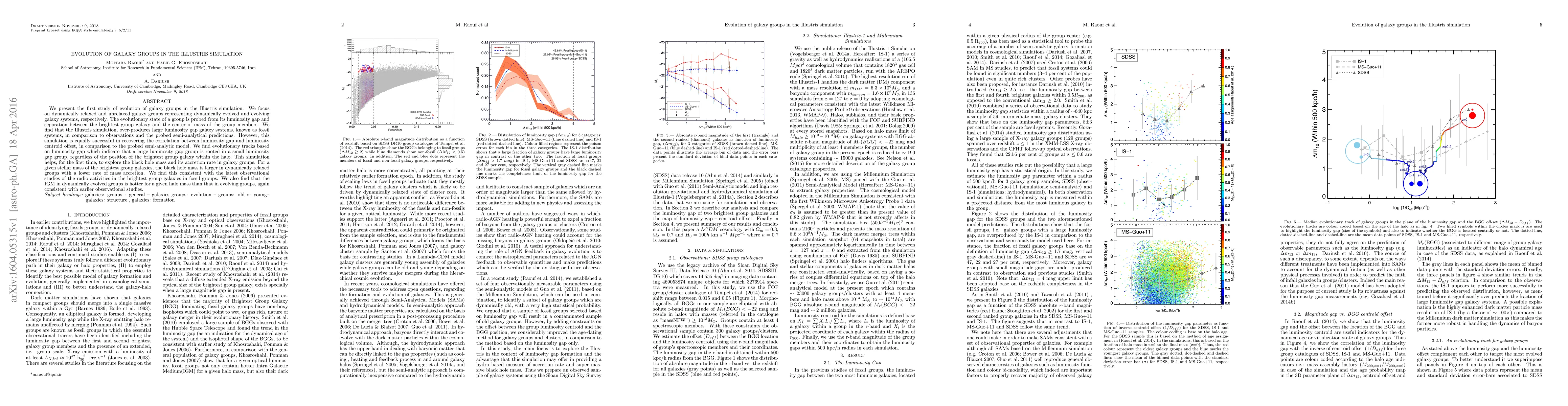 The Illustris simulation reveals the evolution of galaxy groups, showing it over-produces fossil systems but accurately captures the correlation between luminosity gap and centroid offset. The simulation also correlates black hole mass and accretion rates with the evolutionary state of galaxy groups, aligning with recent observational studies.