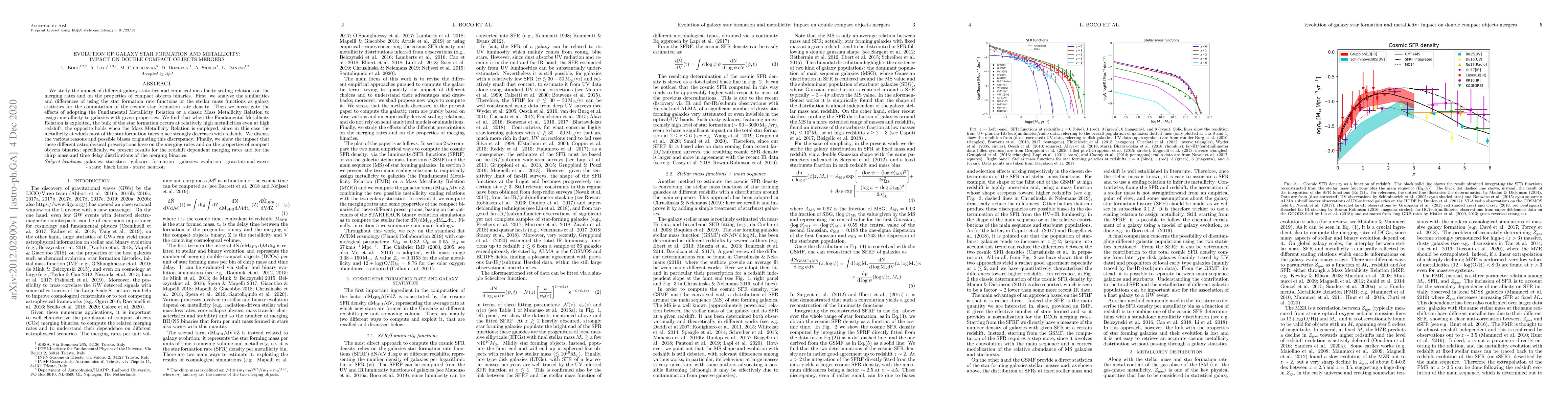 We study the impact of different galaxy statistics and empirical metallicity scaling relations on the merging rates and on the properties of compact objects binaries. First, we analyze the similarities and differences of using the star formation rate functions or the stellar mass functions as galaxy statistics for the computation of the cosmic star formation rate density. Then we investigate the effects of adopting the Fundamental Metallicity Relation or a classic Mass Metallicity Relation to assign metallicity to galaxies with given properties. We find that when the Fundamental Metallicity Relation is exploited, the bulk of the star formation occurs at relatively high metallicities even at high redshift; the opposite holds when the Mass Metallicity Relation is employed, since in this case the metallicity at which most of the star formation takes place strongly decreases with redshift. We discuss the various reasons and possible biases originating this discrepancy. Finally, we show the impact that these different astrophysical prescriptions have on the merging rates and on the properties of compact objects binaries; specifically, we present results for the redshift dependent merging rates and for the chirp mass and time delay distributions of the merging binaries.
