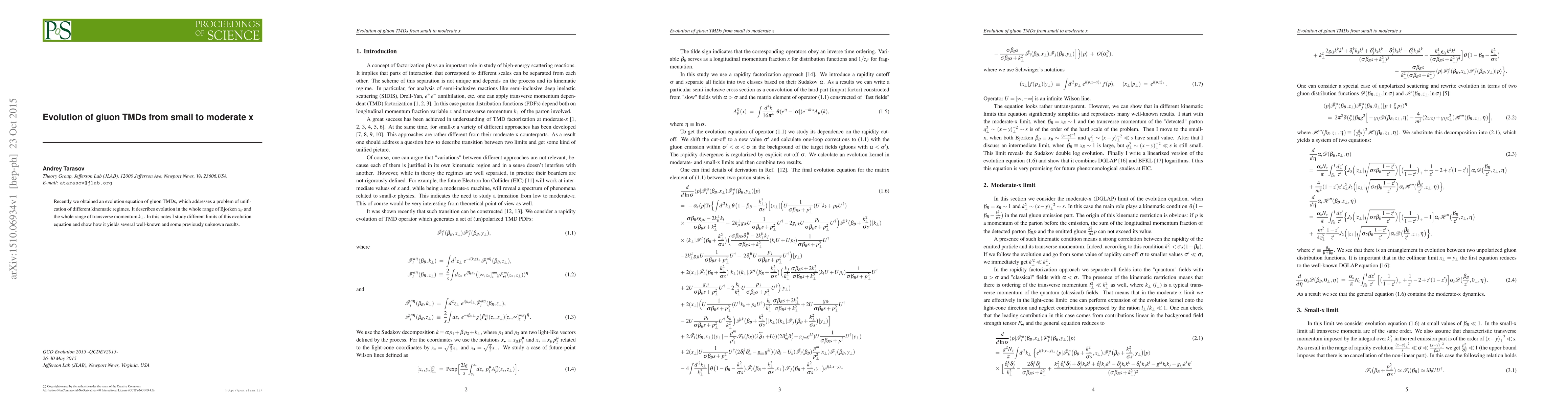Recently we obtained an evolution equation of gluon TMDs, which addresses a problem of unification of different kinematic regimes. It describes evolution in the whole range of Bjorken $x_B$ and the whole range of transverse momentum $k_\perp$. In this notes I study different limits of this evolution equation and show how it yields several well-known and some previously unknown results.
