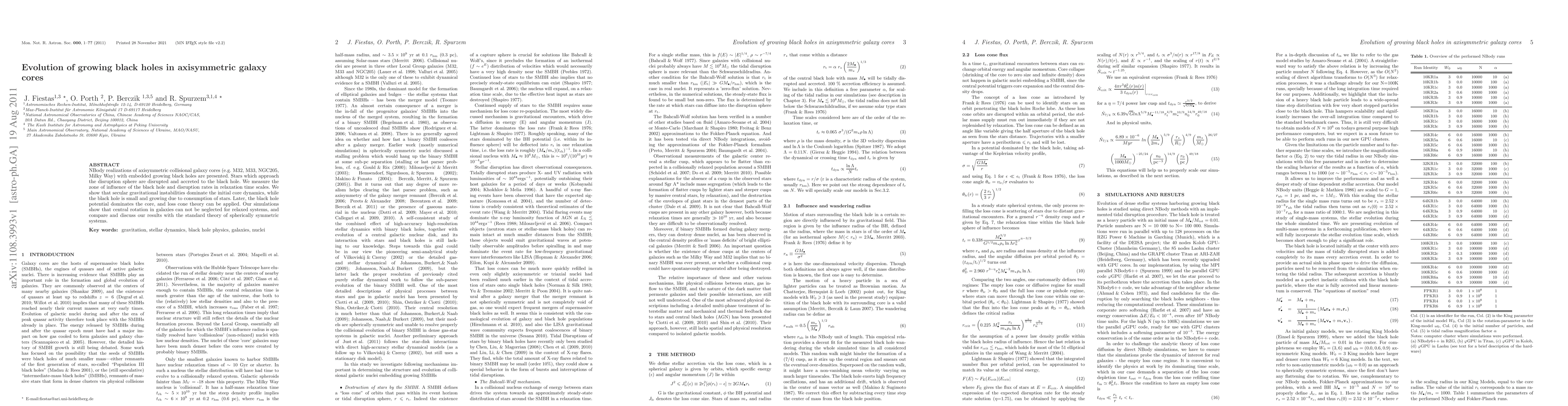 NBody realizations of axisymmetric collisional galaxy cores (e.g. M32, M33, NGC205, Milky Way) with embedded growing black holes are presented. Stars which approach the disruption sphere are disrupted and accreted to the black hole. We measure the zone of influence of the black hole and disruption rates in relaxation time scales. We show that secular gravitational instabilities dominate the initial core dynamics, while the black hole is small and growing due to consumption of stars. Later, the black hole potential dominates the core, and loss cone theory can be applied. Our simulations show that central rotation in galaxies can not be neglected for relaxed systems, and compare and discuss our results with the standard theory of spherically symmetric systems.