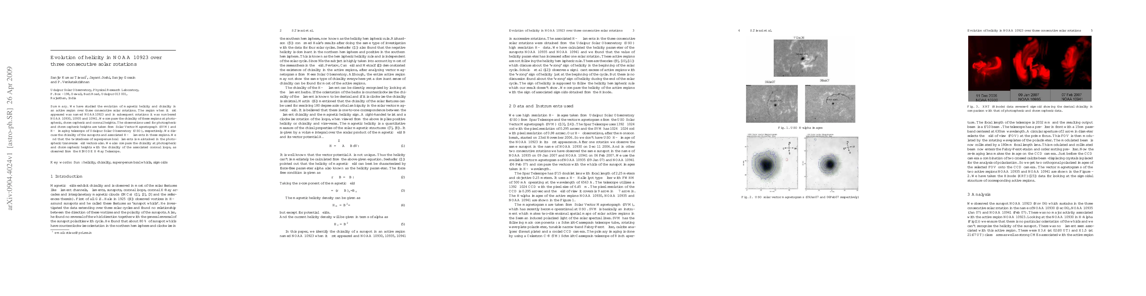 We have studied the evolution of magnetic helicity and chirality in an active region over three consecutive solar rotations. The region when it first appeared was named NOAA10923 and in subsequent rotations it was numbered NOAA 10930, 10935 and 10941. We compare the chirality of these regions at photospheric, chromospheric and coronal heights. The observations used for photospheric and chromospheric heights are taken from Solar Vector Magnetograph (SVM) and H_alpha imaging telescope of Udaipur Solar Observatory (USO), respectively. We discuss the chirality of the sunspots and associated H_alpha filaments in these regions. We find that the twistedness of superpenumbral filaments is maintained in the photospheric transverse field vectors also. We also compare the chirality at photospheric and chromospheric heights with the chirality of the associated coronal loops, as observed from the HINODE X-Ray Telescope.