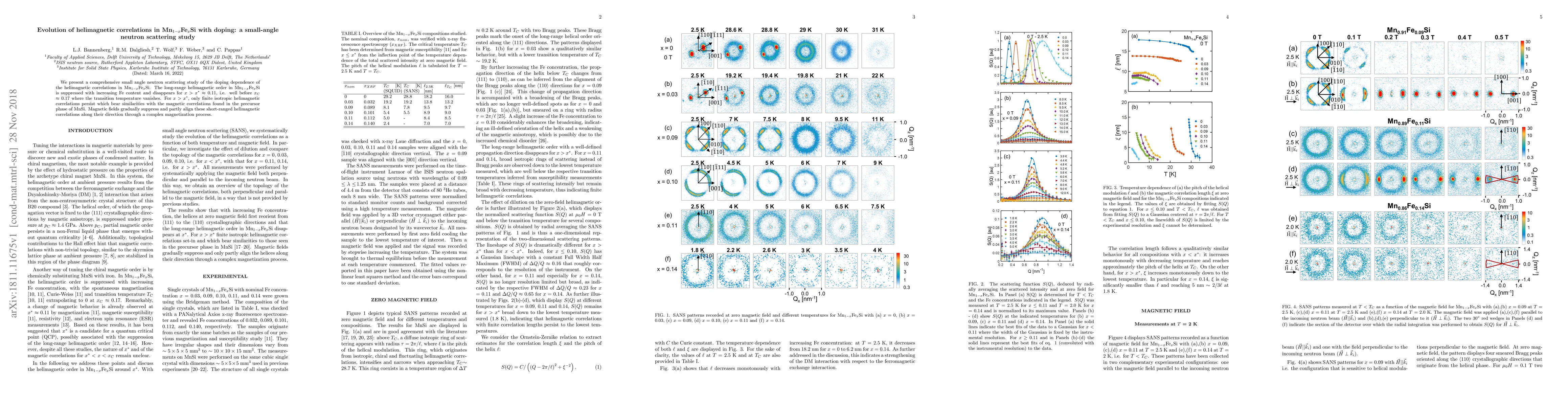 We present a comprehensive small angle neutron scattering study of the doping dependence of the helimagnetic correlations in Mn$_{1-x}$Fe$_{x}$Si. The long-range helimagnetic order in Mn$_{1-x}$Fe$_x$Si is suppressed with increasing Fe content and disappears for $x$ $>$ $x^*$ $\approx$ 0.11, i.e. well before $x_C$ $\approx$ 0.17 where the transition temperature vanishes. For $x$ $>$ $x^*$, only finite isotropic helimagnetic correlations persist which bear similarities with the magnetic correlations found in the precursor phase of MnSi. Magnetic fields gradually suppress and partly align these short-ranged helimagnetic correlations along their direction through a complex magnetization process.