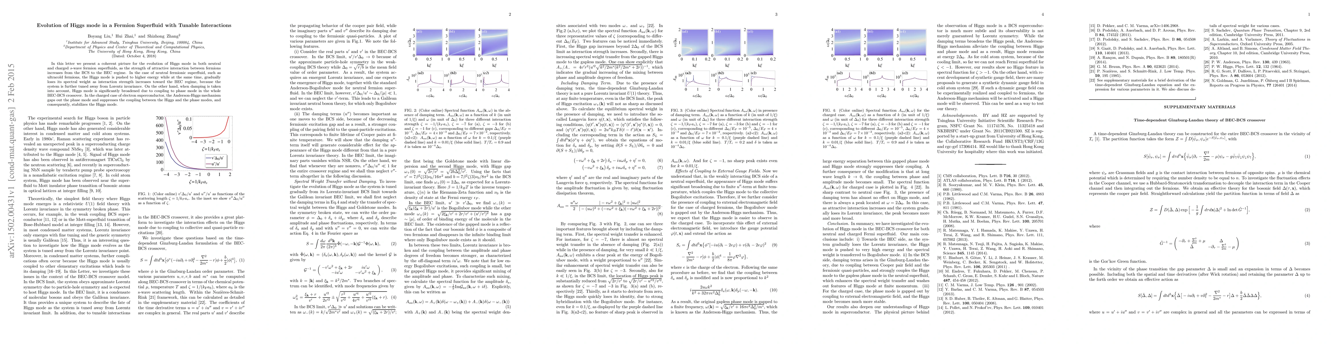 The paper presents a coherent explanation of Higgs mode evolution in fermion superfluids, from BCS to BEC regimes. In neutral superfluids like ultracold fermions, Higgs mode shifts to higher energies and loses weight due to reduced Lorentz invariance. Damping causes broadening via phase mode coupling. In charged superconductors, the Anderson-Higgs mechanism stabilizes the Higgs mode by gapping out the phase mode.