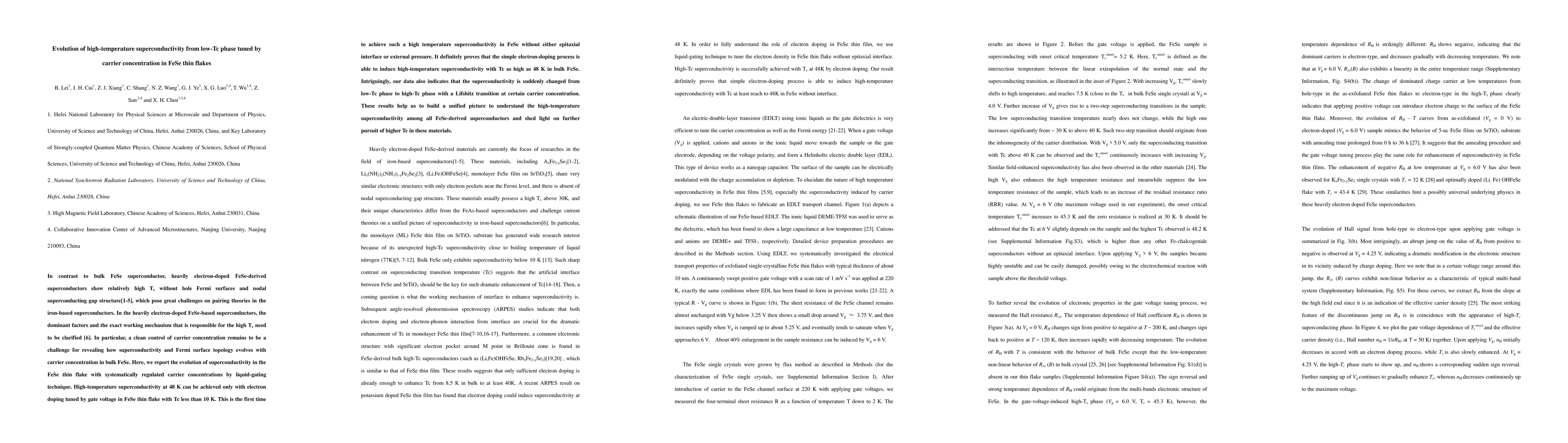 Single crystals of FeSe were grown using a KCl–AlCl3 flux method. FeSe thin flakes were mechanically exfoliated and transferred onto a SiO2/Si substrate, forming an EDLT device. Transport measurements were conducted using a Quantum Design physical property measurement system with varied temperature and magnetic field.