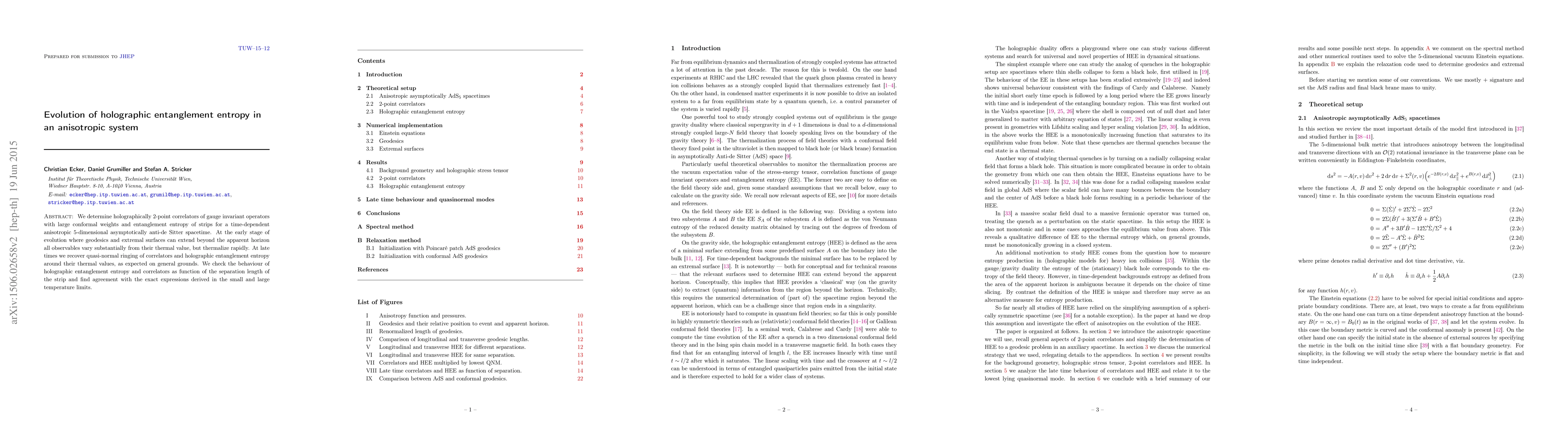 We determine holographically 2-point correlators of gauge invariant operators with large conformal weights and entanglement entropy of strips for a time-dependent anisotropic 5-dimensional asymptotically anti-de Sitter spacetime. At the early stage of evolution where geodesics and extremal surfaces can extend beyond the apparent horizon all observables vary substantially from their thermal value, but thermalize rapidly. At late times we recover quasi-normal ringing of correlators and holographic entanglement entropy around their thermal values, as expected on general grounds. We check the behaviour of holographic entanglement entropy and correlators as function of the separation length of the strip and find agreement with the exact expressions derived in the small and large temperature limits.