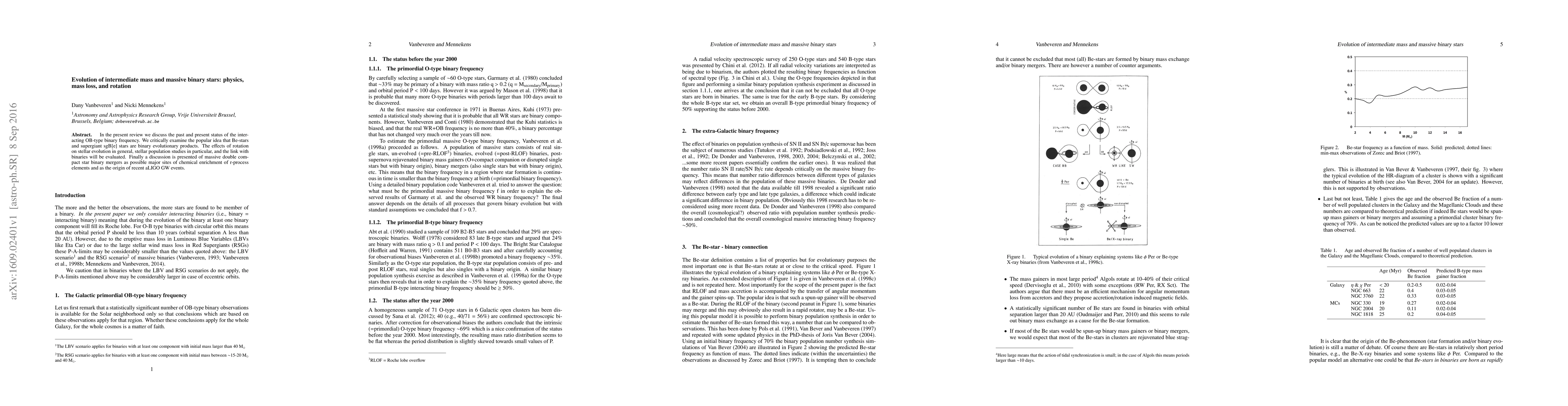 In the present review we discuss the past and present status of the interacting OB-type binary frequency. We critically examine the popular idea that Be-stars and supergiant sgB[e] stars are binary evolutionary products. The effects of rotation on stellar evolution in general, stellar population studies in particular, and the link with binaries will be evaluated. Finally a discussion is presented of massive double compact star binary mergers as possible major sites of chemical enrichment of r-process elements and as the origin of recent aLIGO GW events.